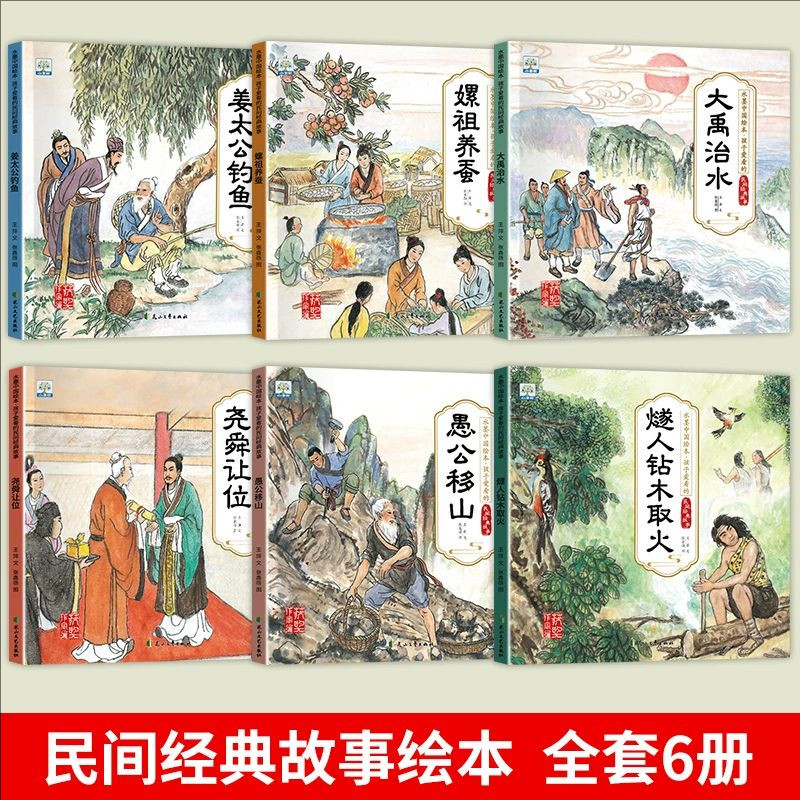 📚 全6册小果树系列 水墨中国绘本 孩子爱看的民间经典故事大禹治水嫘祖养蚕姜太公钓鱼燧人钻木取火愚公移山尧舜让位 传统文化图画书
