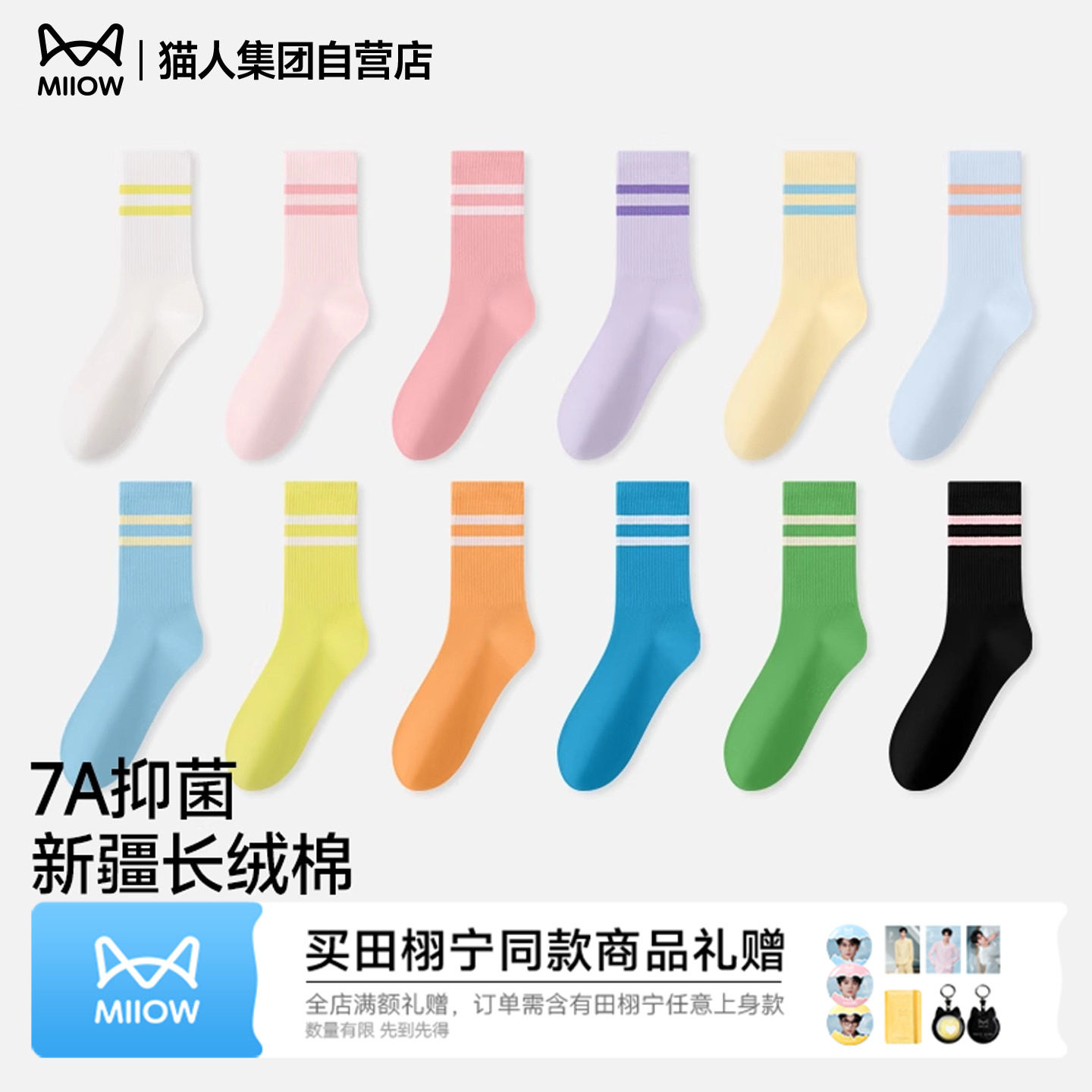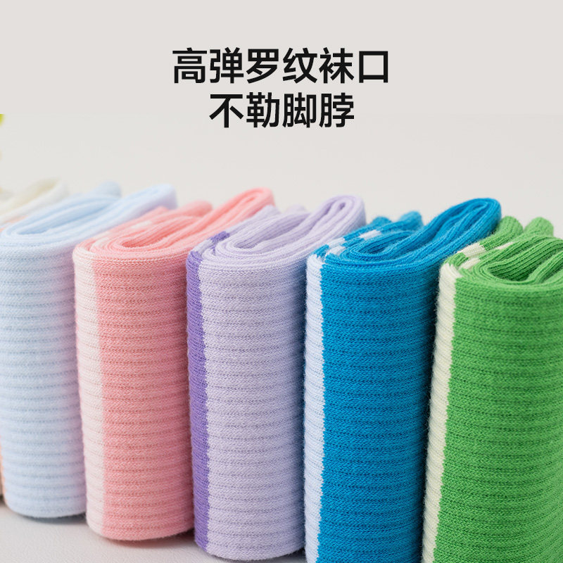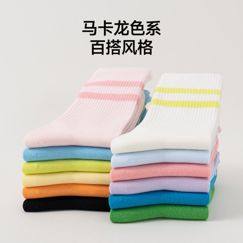📚 猫人秋季新品中筒袜多巴胺纯色罗口横条中筒袜男女同款情侣棉袜