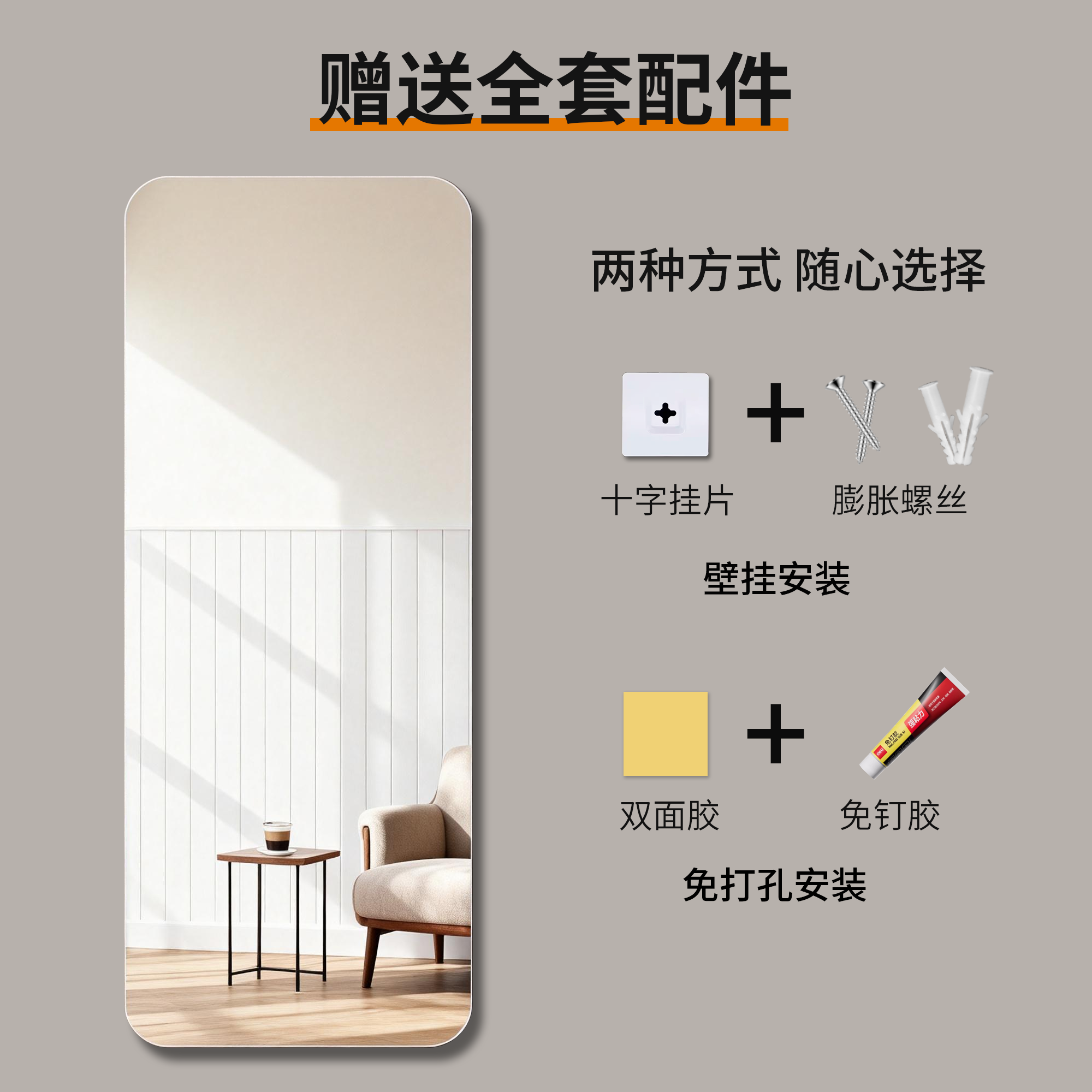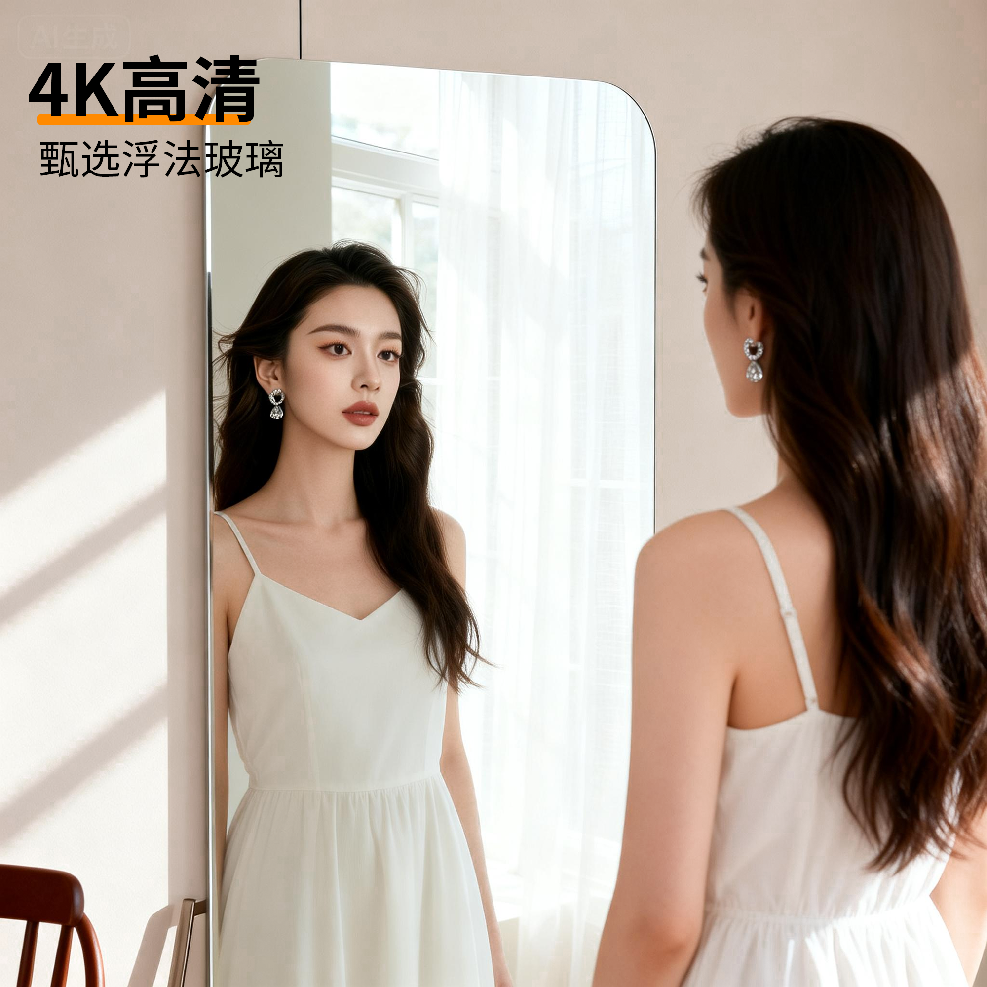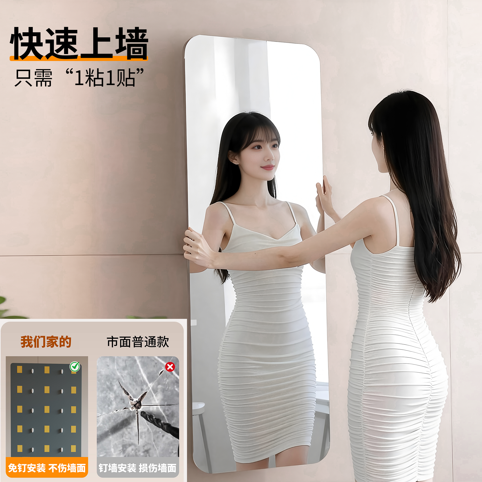 📚 加厚5MM镜片全身镜免打孔自粘贴墙穿衣镜简约家用试衣镜玻璃镜子