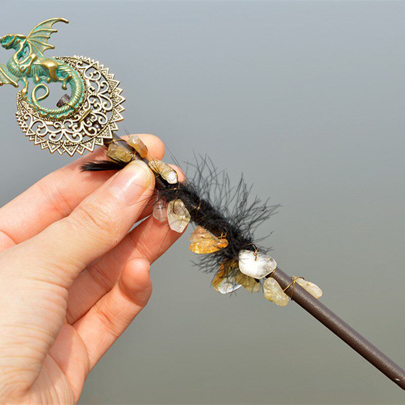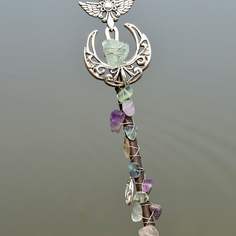 📚 18厘米长紫水晶月亮维京龙羽毛手工权杖仙女棒天然水晶碎石女巫