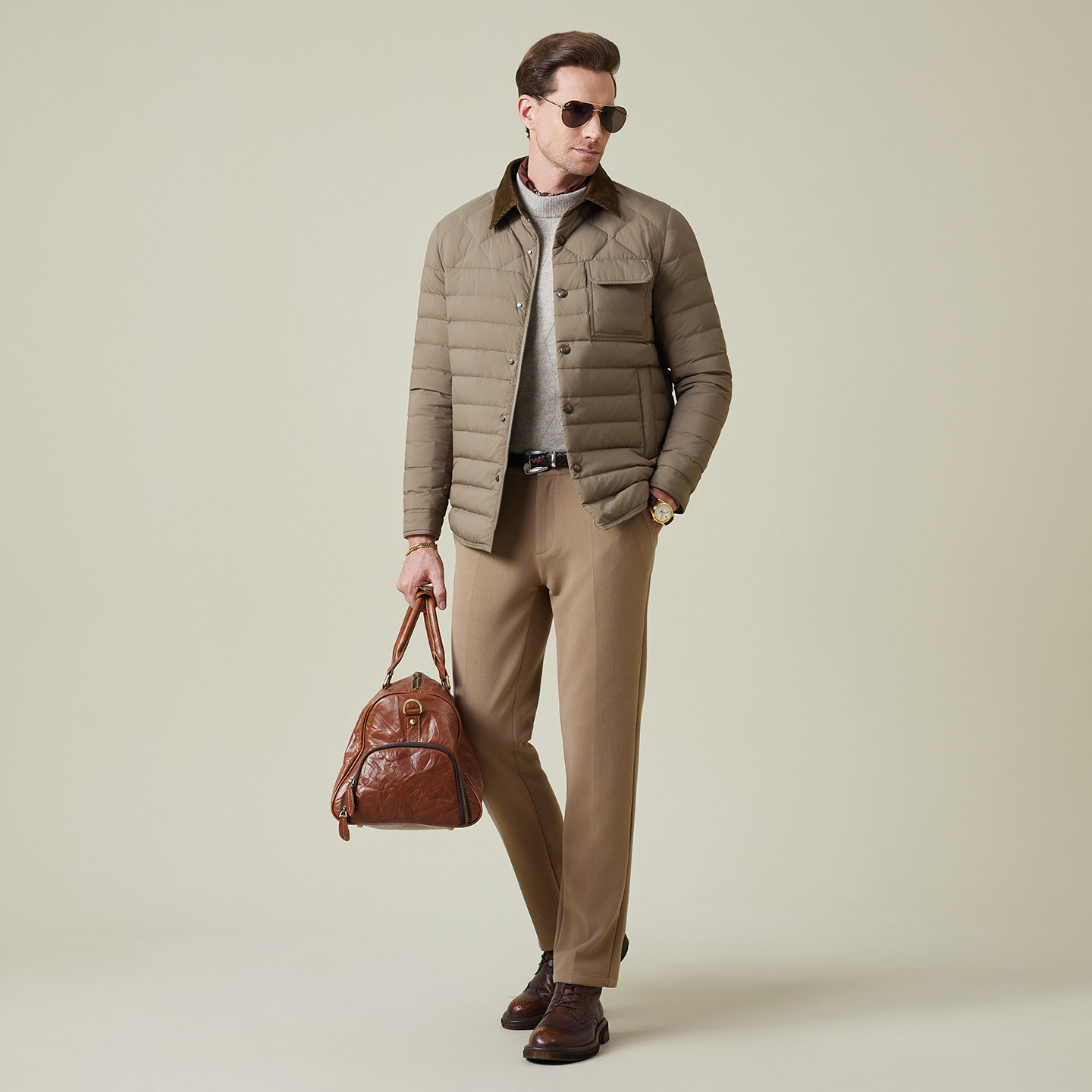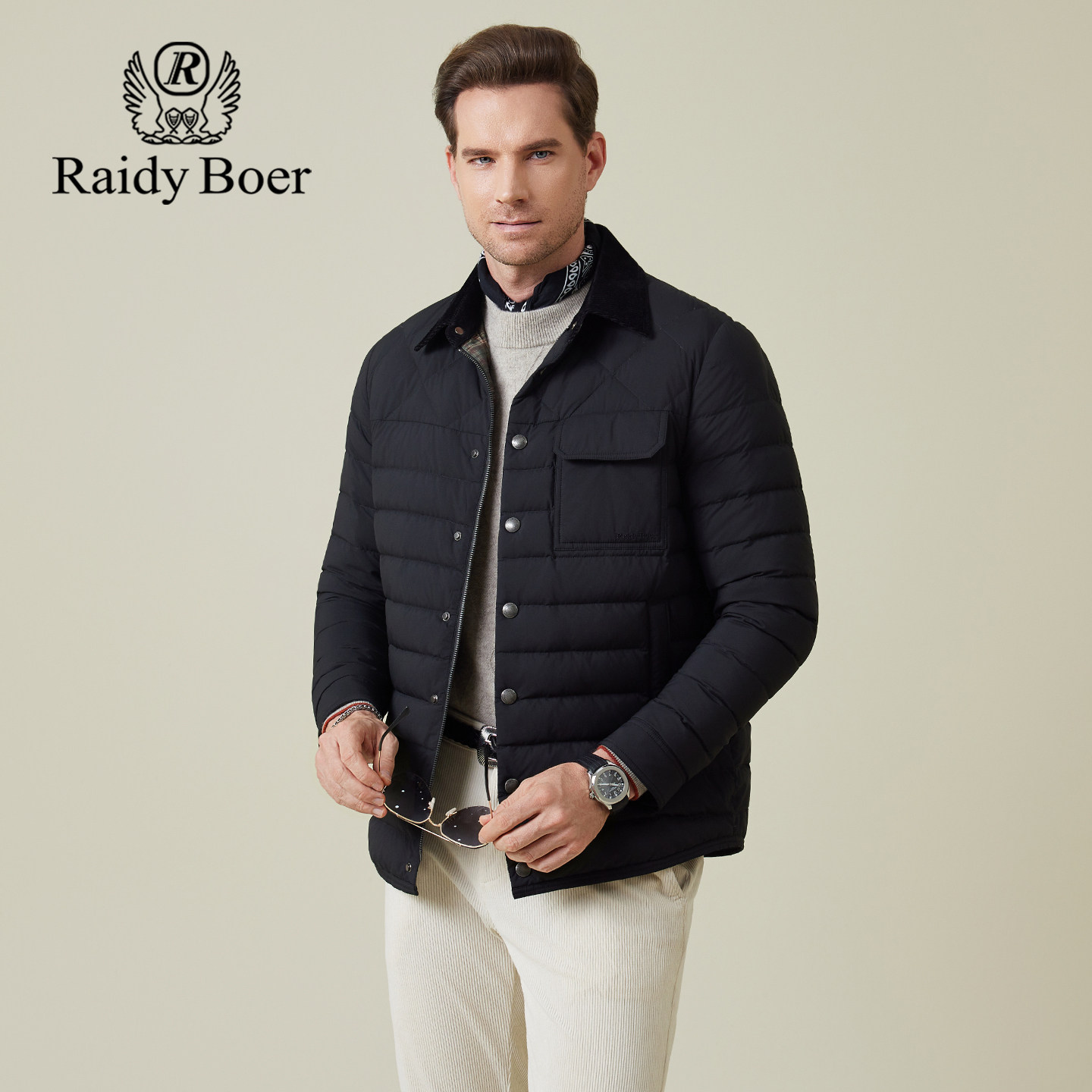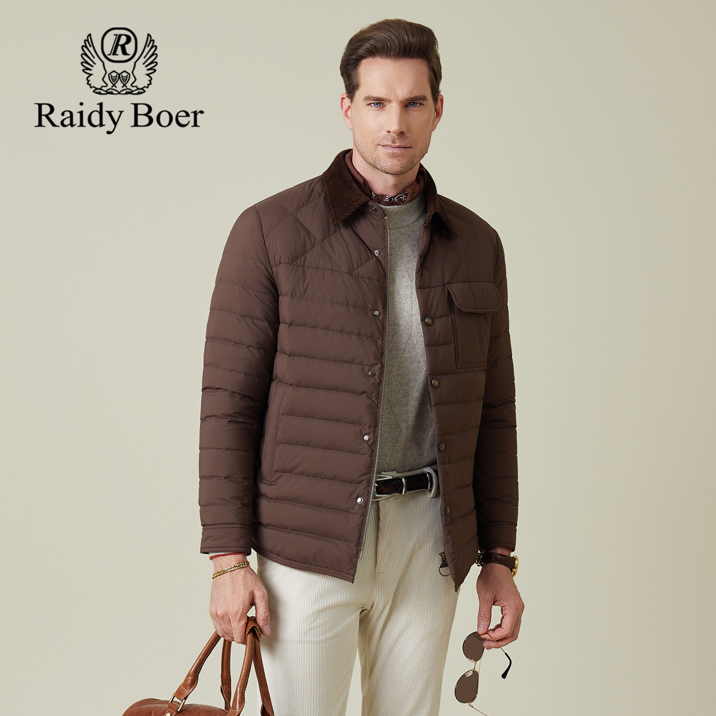 📚 雷迪波尔男装羽绒服2025冬季新款翻领老钱巴恩风日常鸭绒休闲外套
