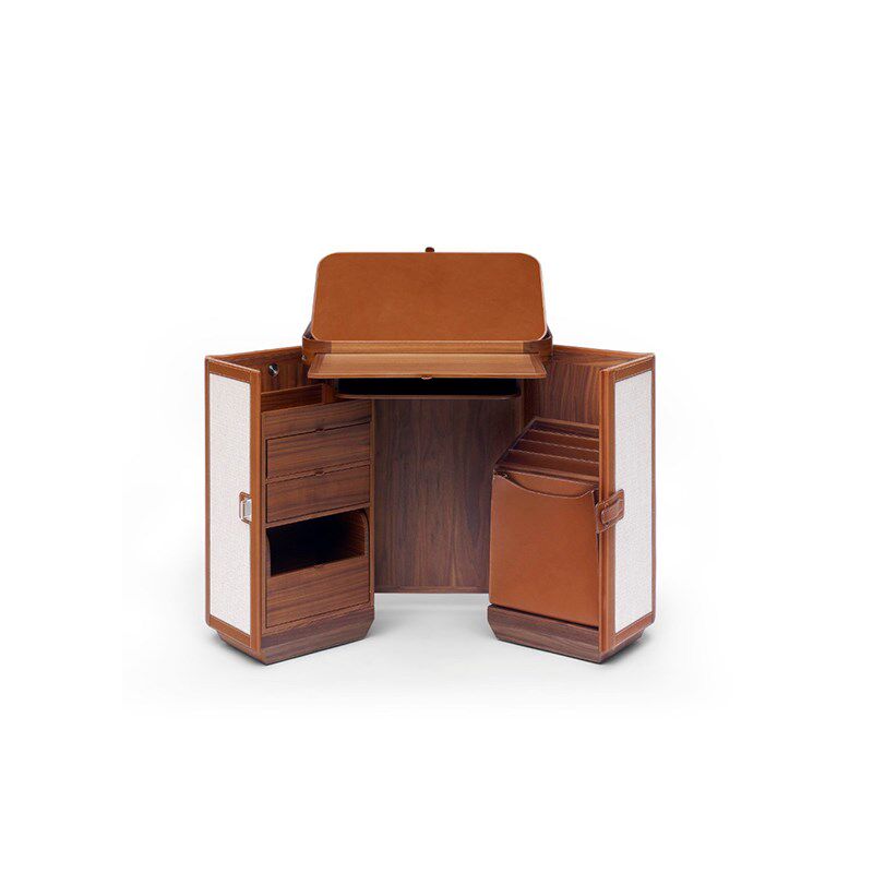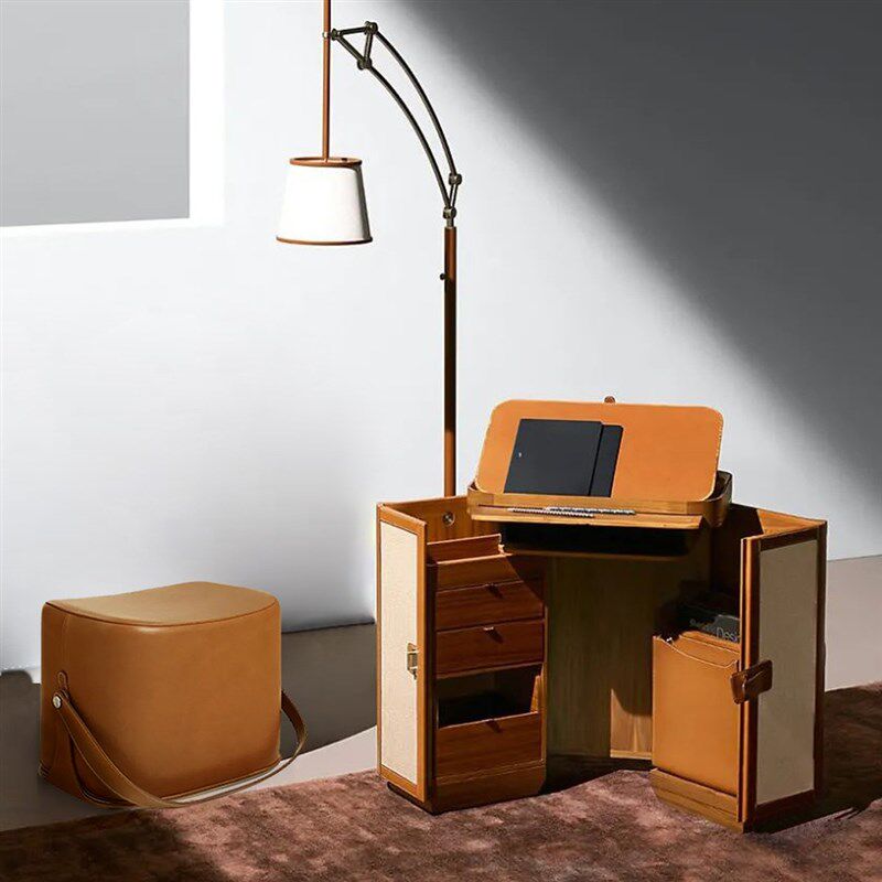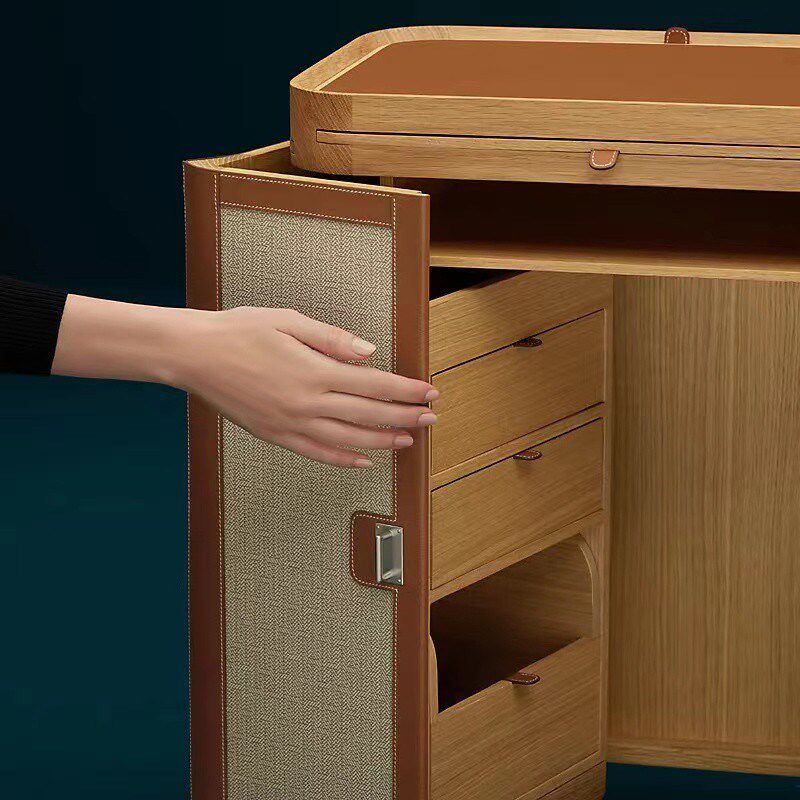 📚 意式轻奢卧室实木硬包皮革可折叠马鞍皮收纳化妆柜多层储物装饰柜