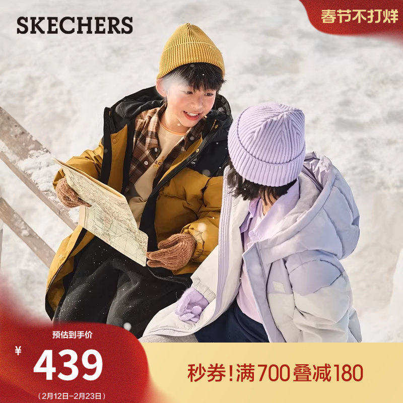 📚 斯凯奇童装冬季流行儿童羽绒服外套小暖宝中大童男女款上衣连帽