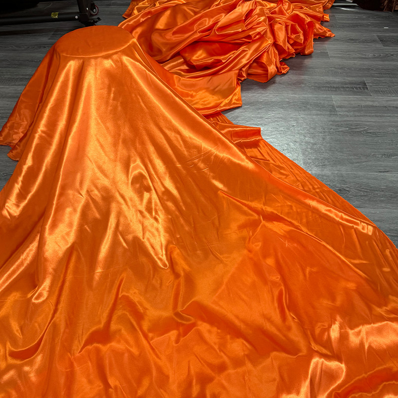 📚 橙色绸布高密度色丁亮面绸缎布料新车揭幕布丝绸仿真丝缎面料布料