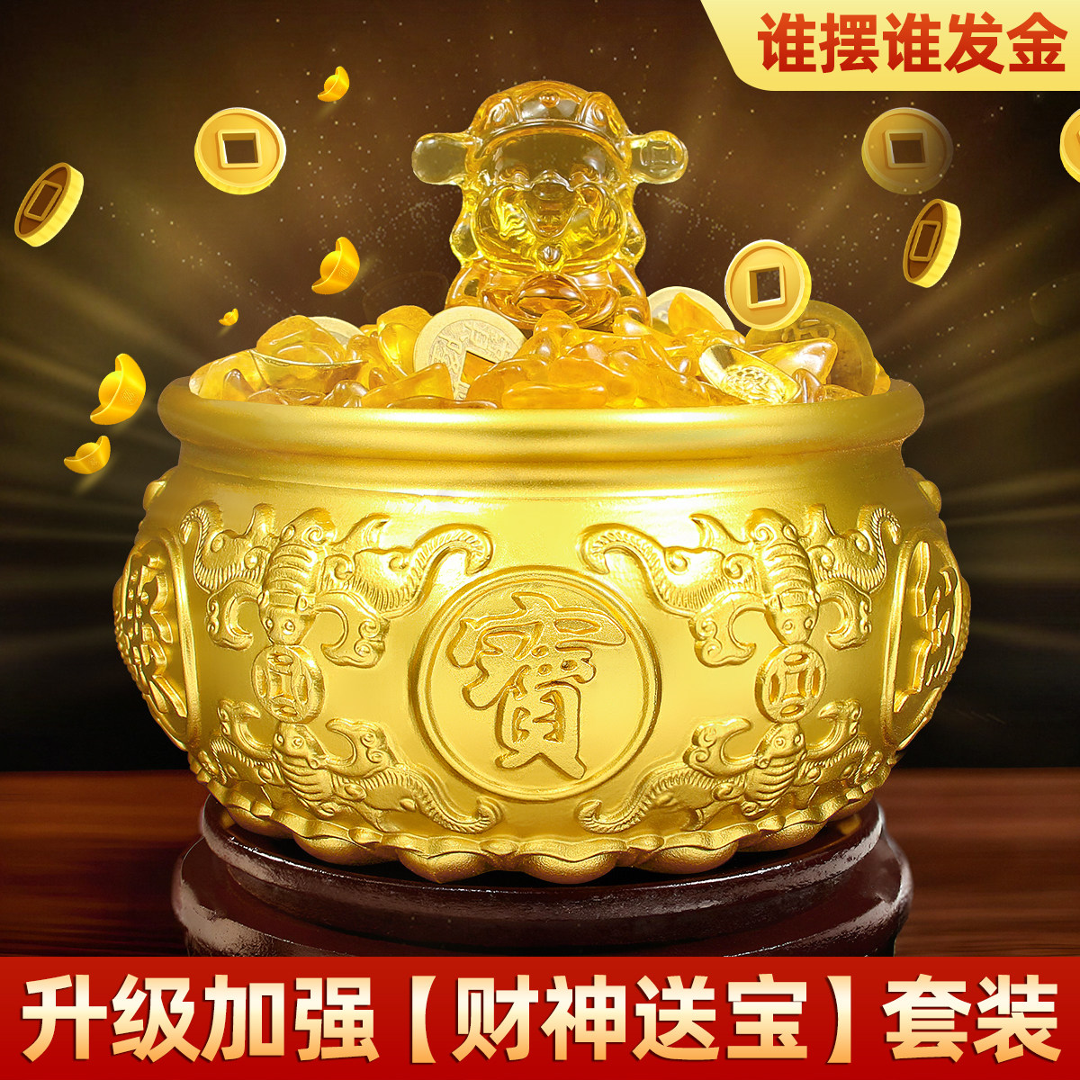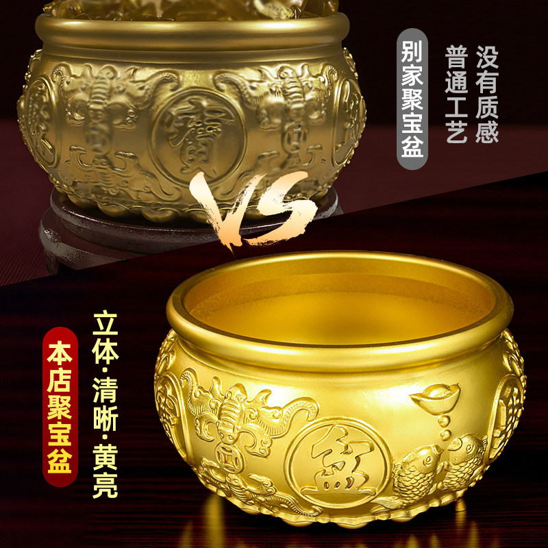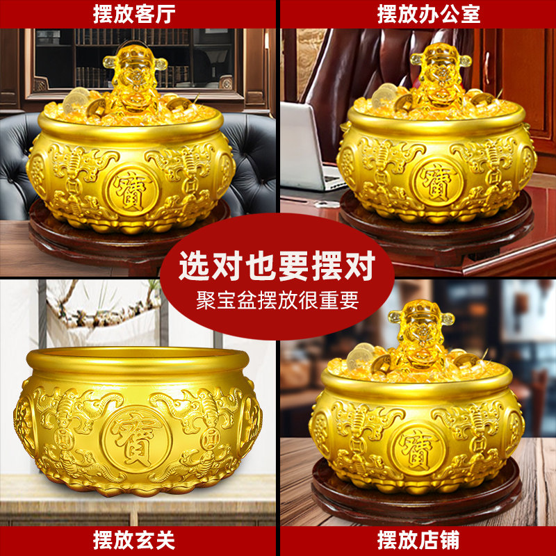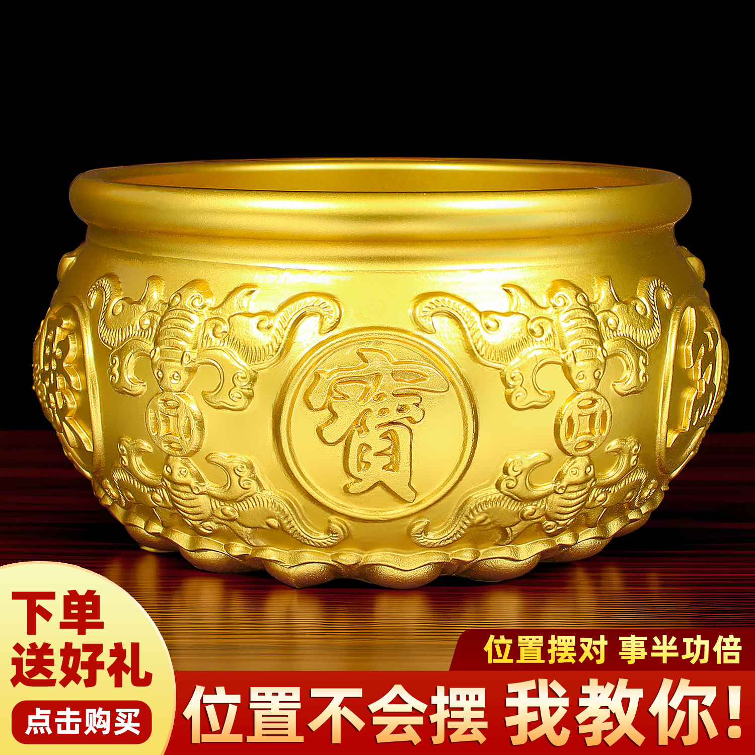 📚 黄铜聚宝盆摆件金元宝黄金色金属冰箱上的百福铜缸存钱罐结婚家用