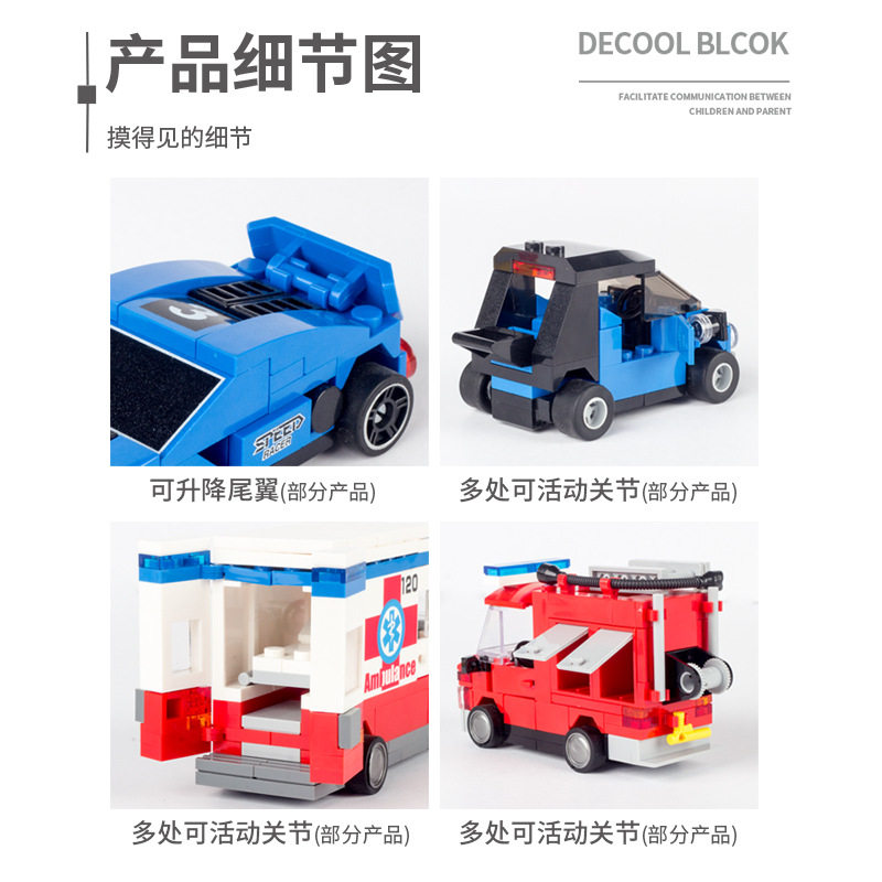 📚 迪库积木拼装回力汽车救护车消防车坦克男孩拼插模型儿童益智玩具