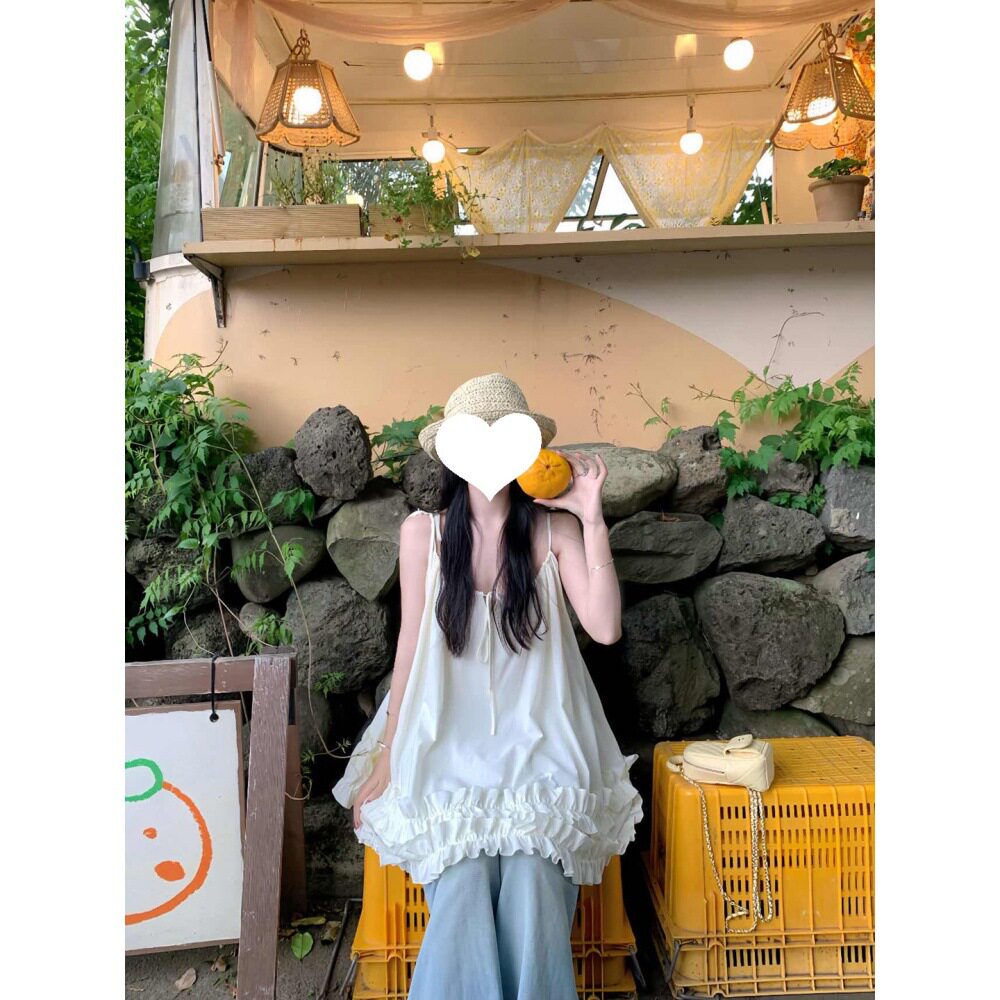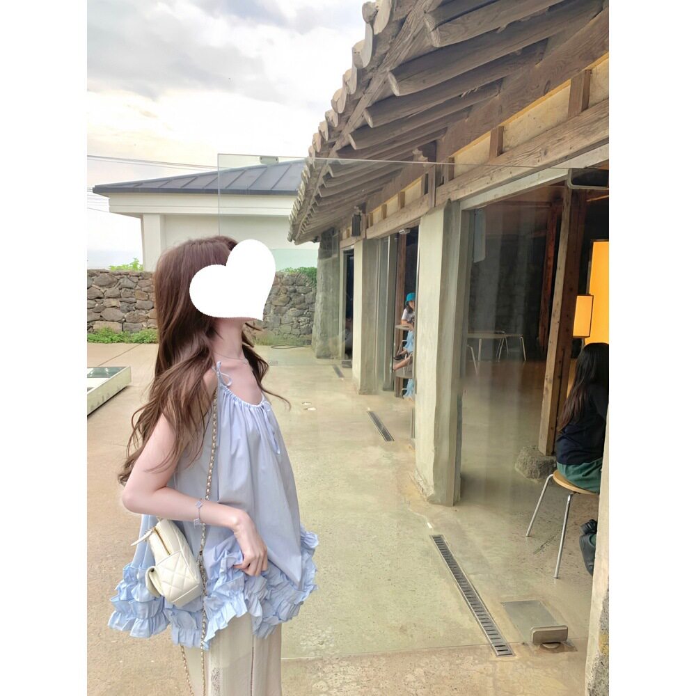 📚 白水女 里斯本夏日 不规则荷叶边粉色吊带连衣裙女夏海边法式裙子