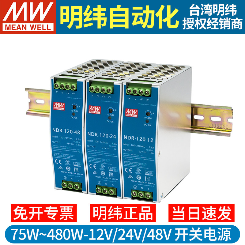 📚 明纬NDR导轨式12V48V24V开关电源75/120/240/480直流DRP变压器10A