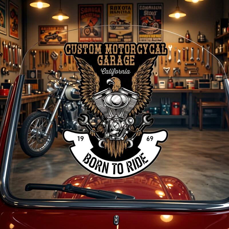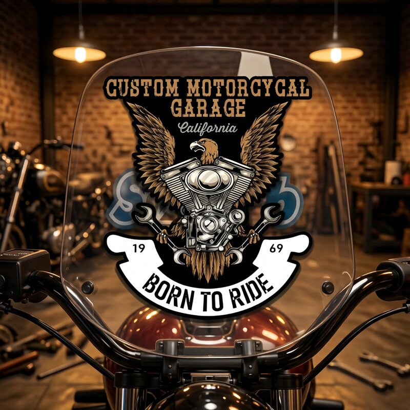 📚 CUSTOM garage 美式v缸油箱泥瓦风挡遮挡划痕水晶车贴23704#