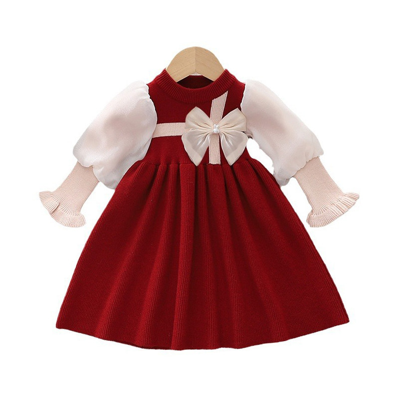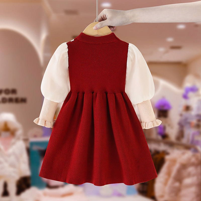 📚 女童针织毛衣裙秋冬2024新款红色耶诞公主裙小女孩洋派加厚新年服