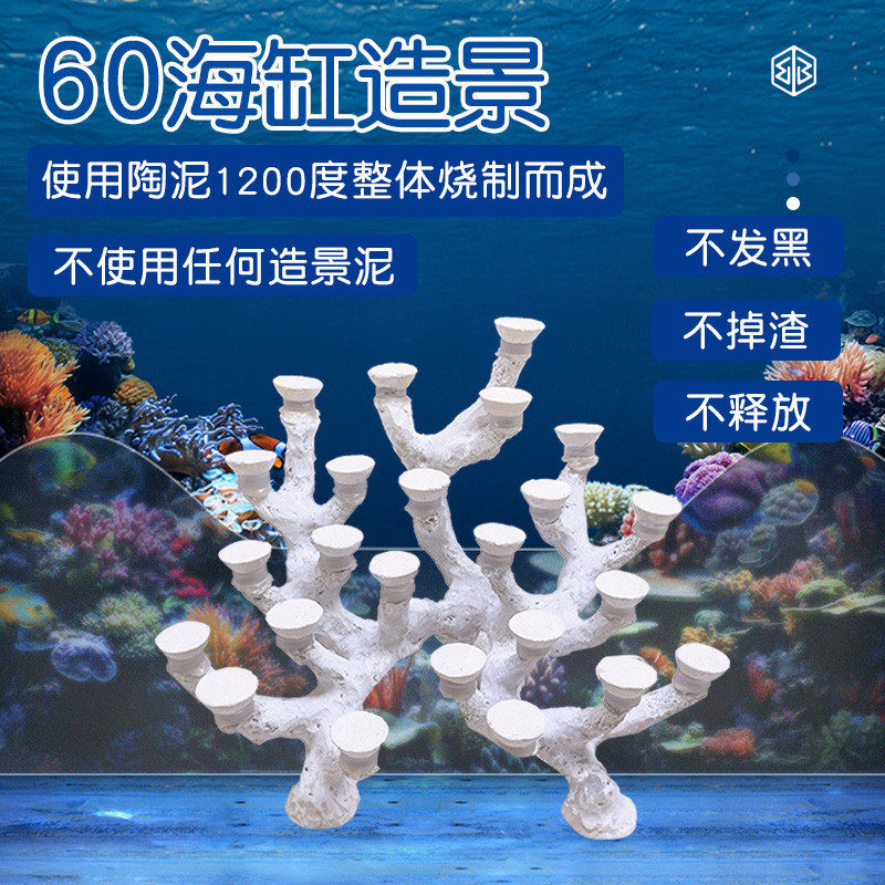 📚 60海水缸造景石海缸用品水族养鱼摆件树景烧制款景观岩石装饰定制