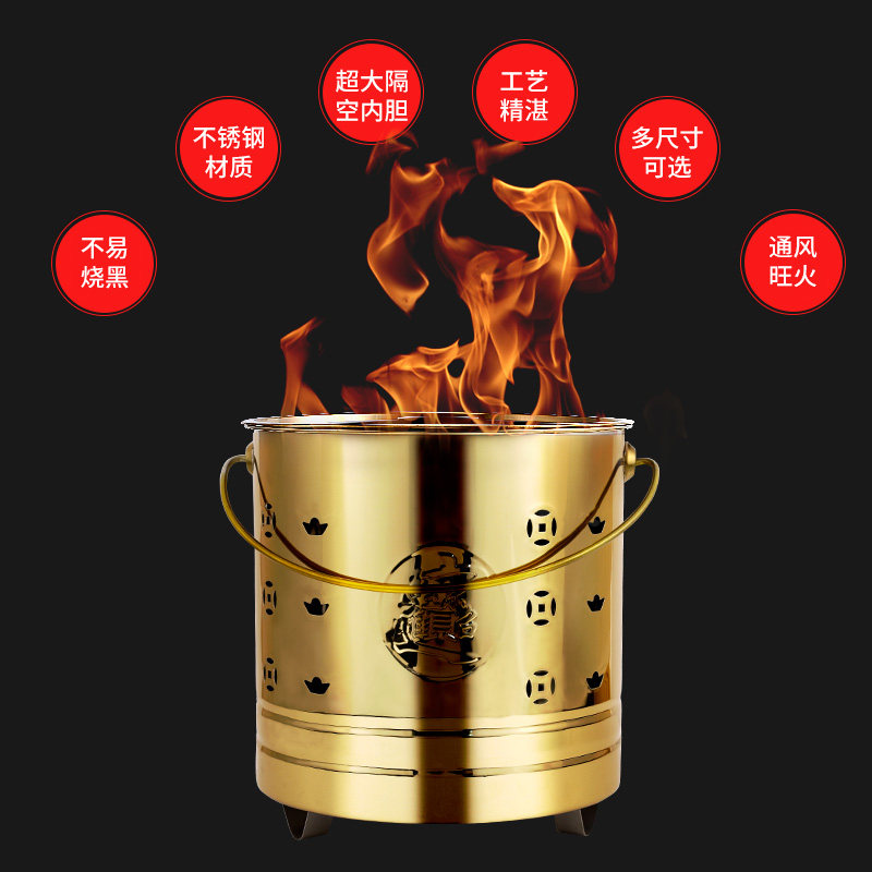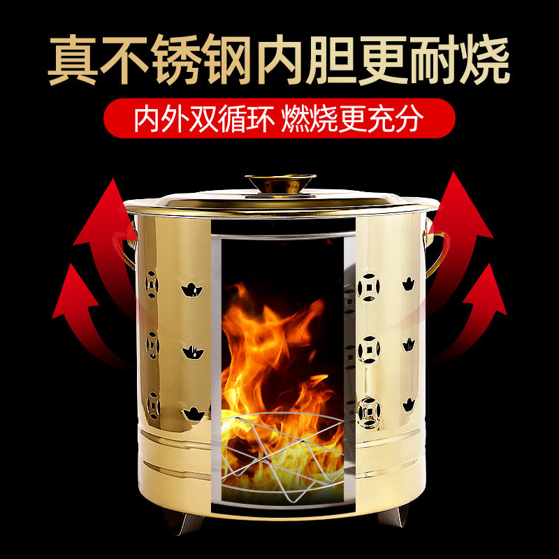 📚 不锈钢烧纸桶家用烧金桶室内锡箔元宝桶焚烧炉化宝桶聚宝盆焚化炉