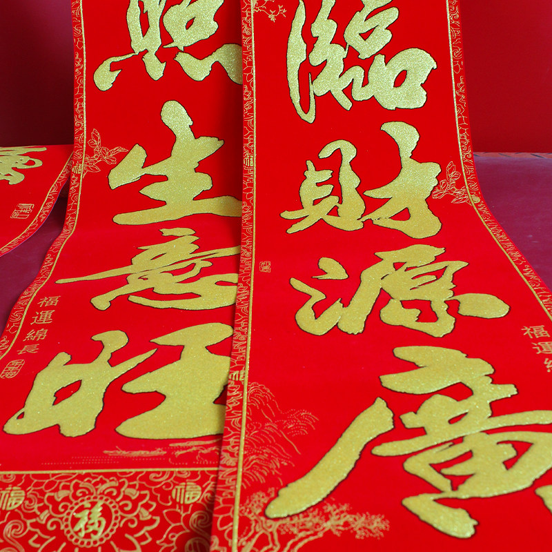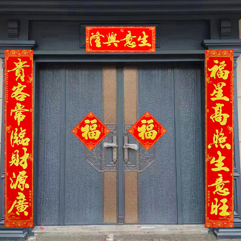 📚 高档绒布生意兴隆对联自带背胶开业财源广进公司店面厂房大门春联