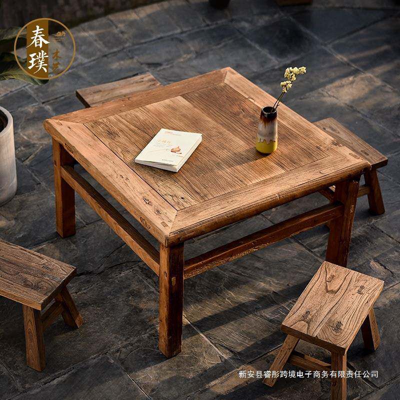 📚 老榆木八仙桌实木正方形方桌中式明清仿古小矮桌子家用餐桌椅组