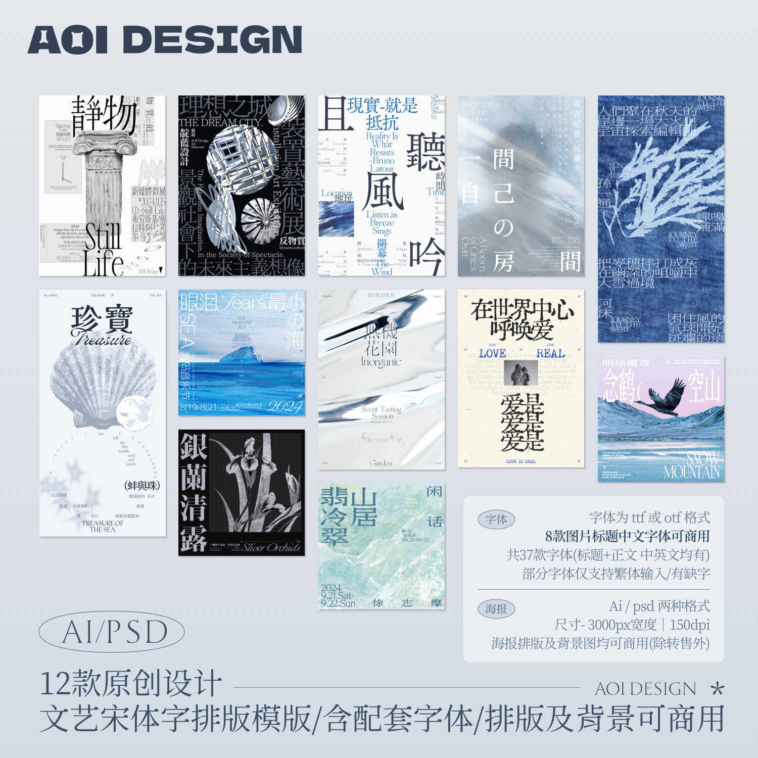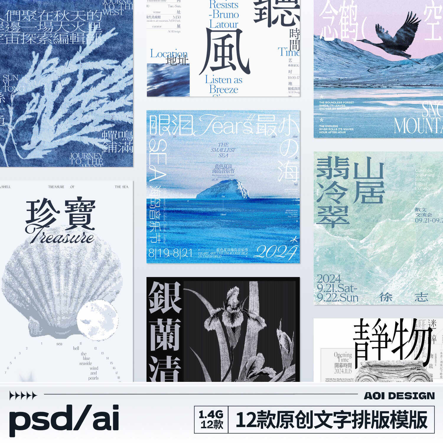 📚 高级排版海报模板中文字体活动宣传海报邀请函模版可商用ps素材ai