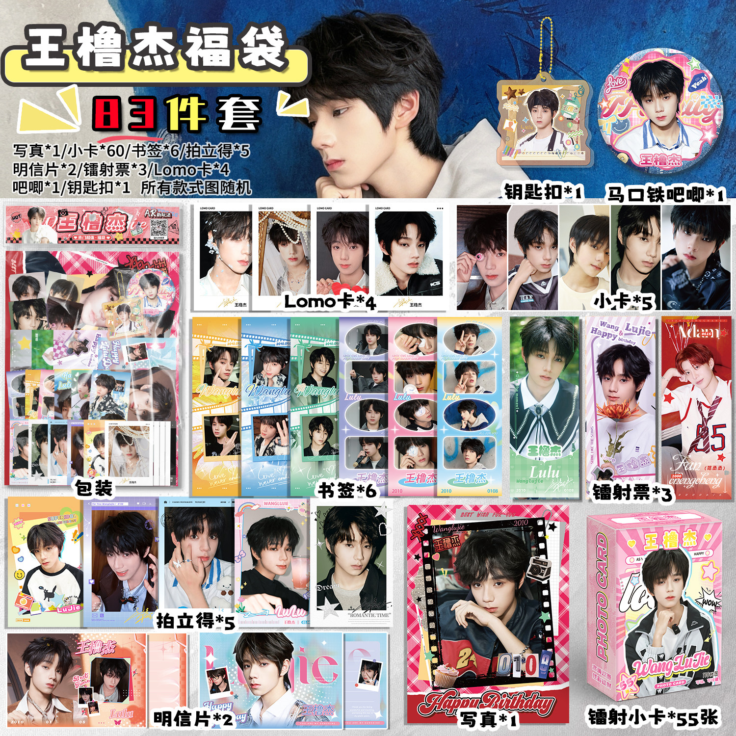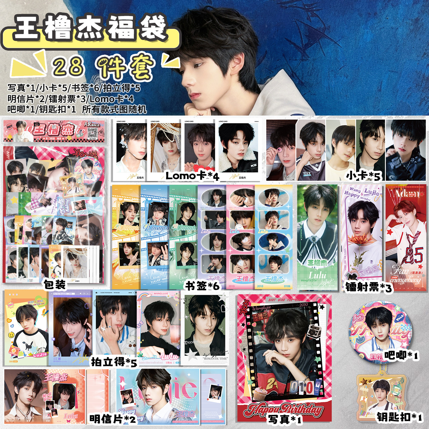 📚 王橹杰周边福袋写真拍立得小卡镭射票书签明信片礼物吧唧徽章