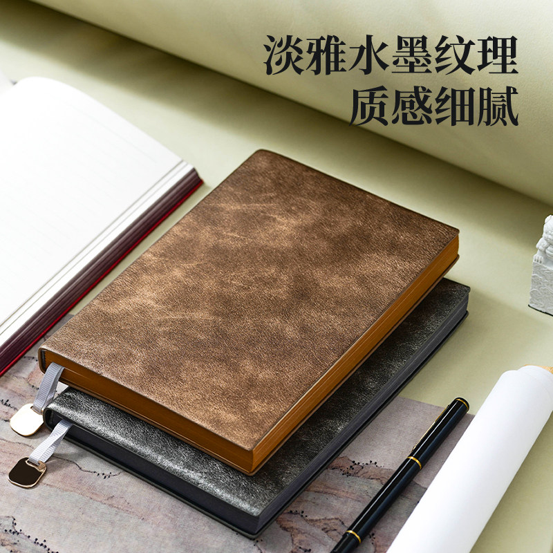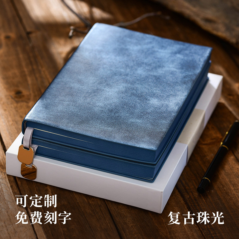 📚 复古珠光皮质记事本礼盒定制可印logo商务人士高档办公工作专用会议纪要安排记录国风高颜值加厚A5笔记本本子