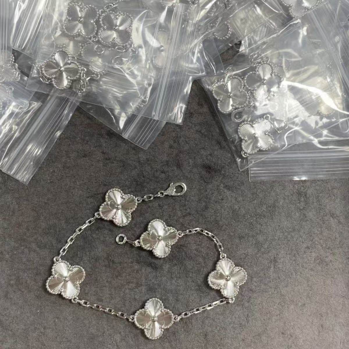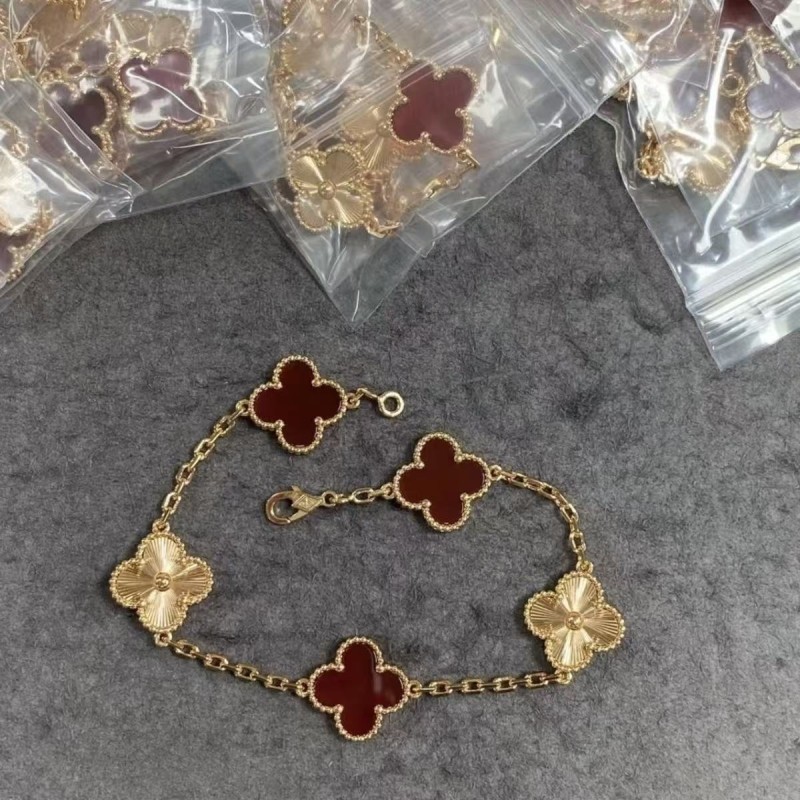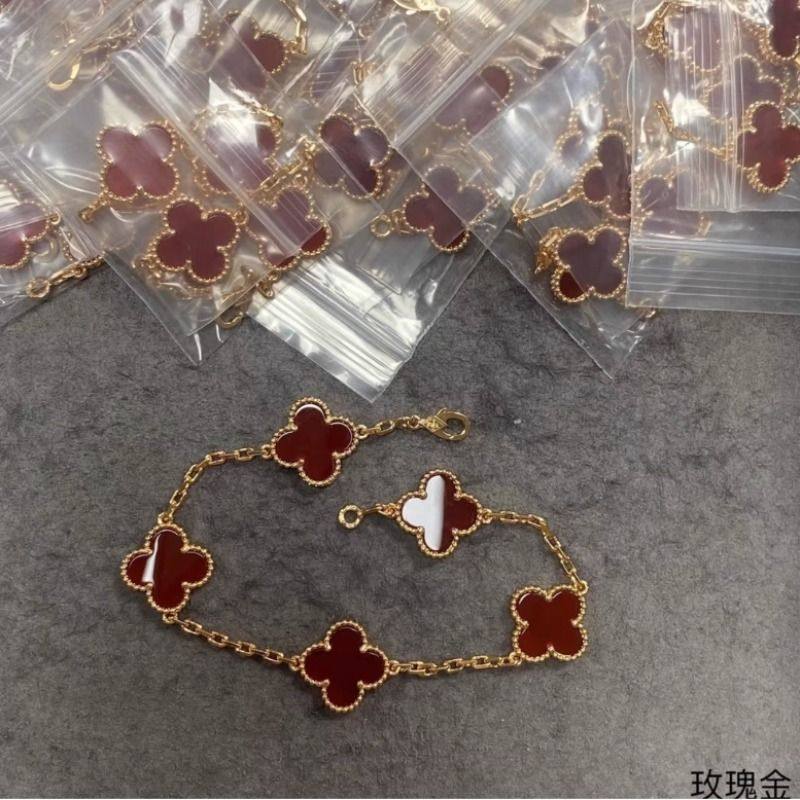 📚 高版本五花四叶草手链女V金镀18K金镭射紫玉髓虎眼石熊猫红玛瑙