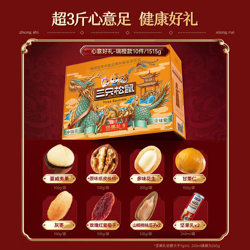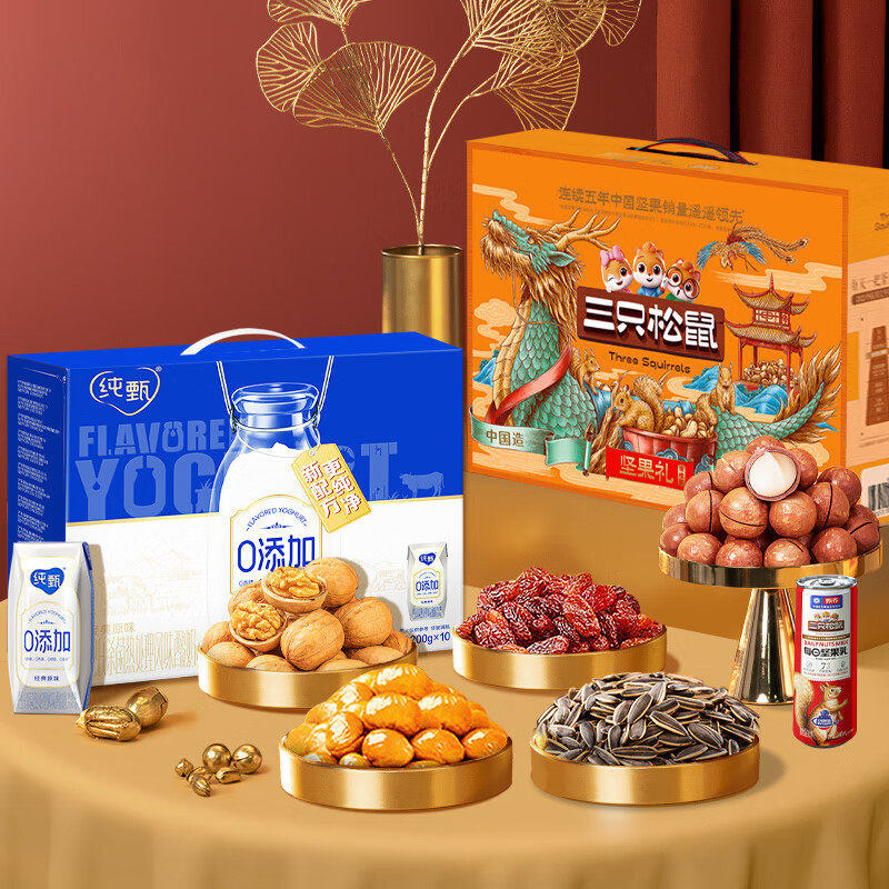 📚 三只松鼠坚果礼盒1515g+蒙牛纯甄200g*10盒 坚果酸奶零食【送礼组