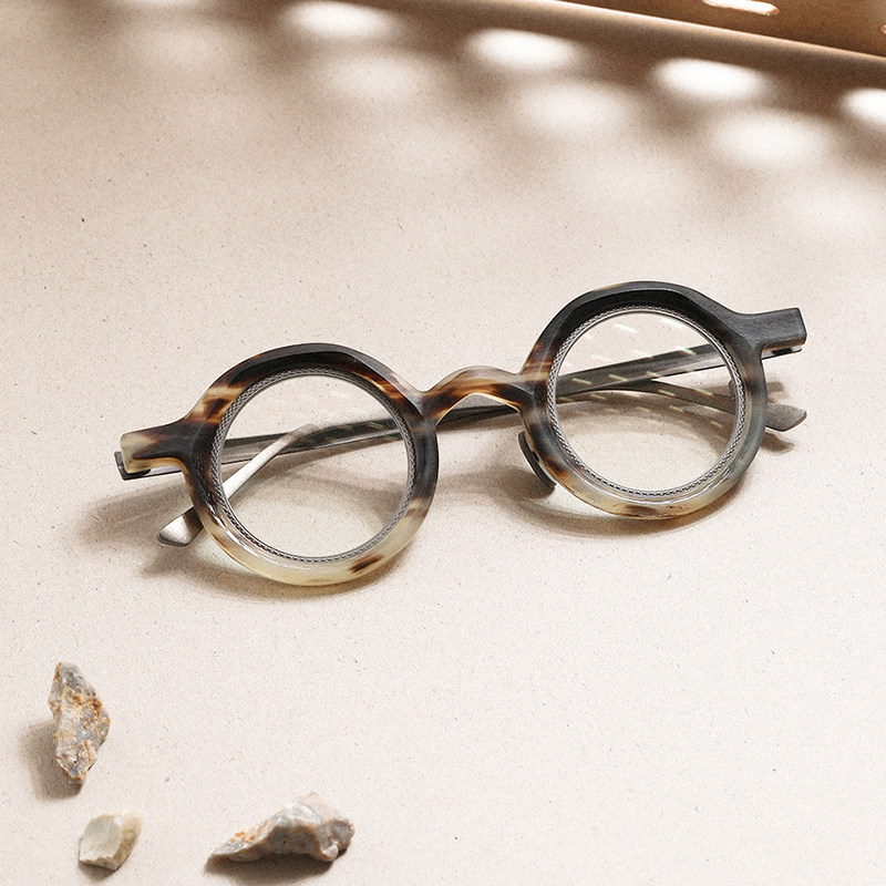 📚 RIGARDS 24春夏新款 RG1062 圆形水牛角眼镜框 升级钛金属内圈