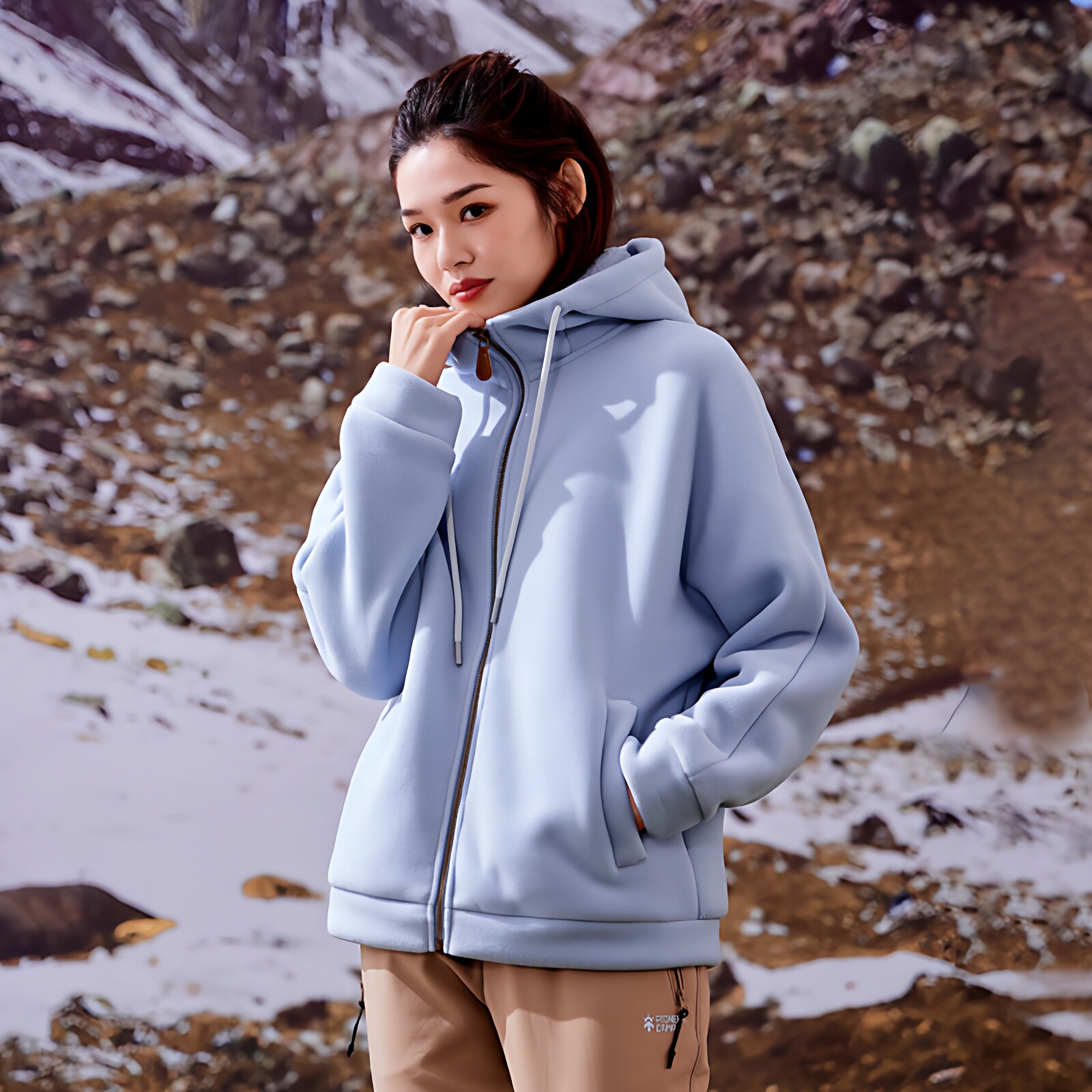 📚 拓路者女款开衫宽松卫衣春秋新款加绒加厚连帽长袖拉链摇粒绒外套