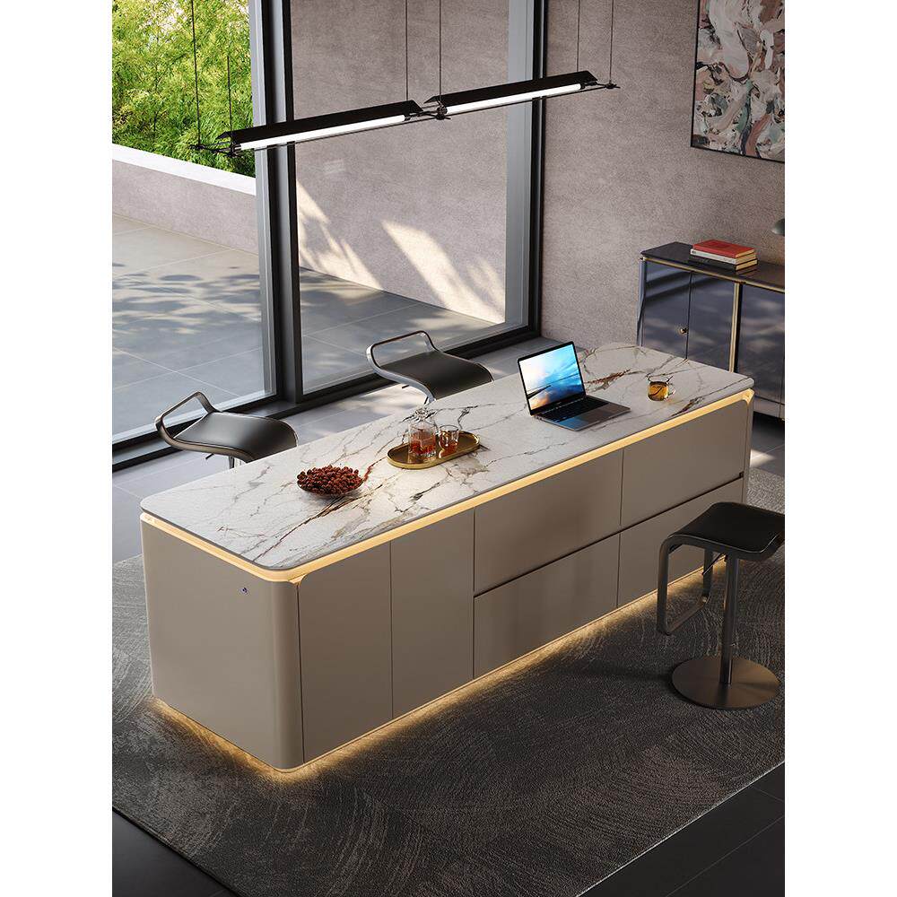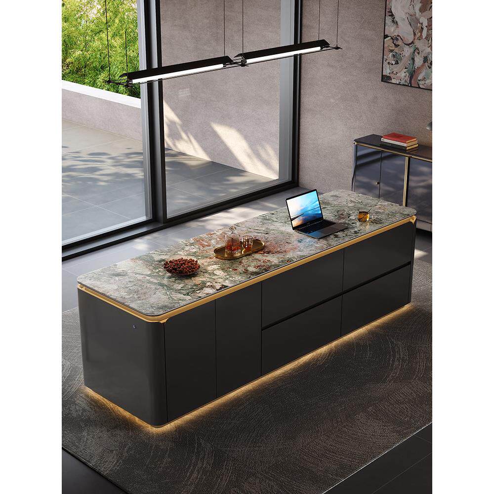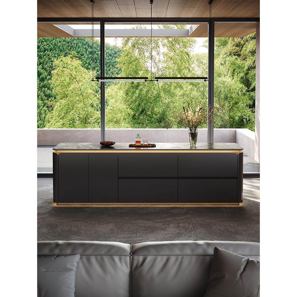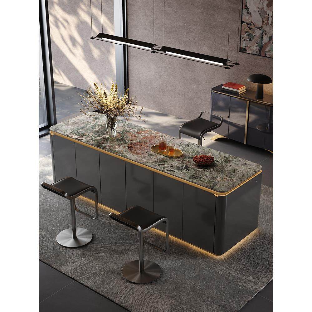 📚 高端花瓣岩板中岛台一体开放式厨房隔断吧台高级西厨倒台餐桌定制