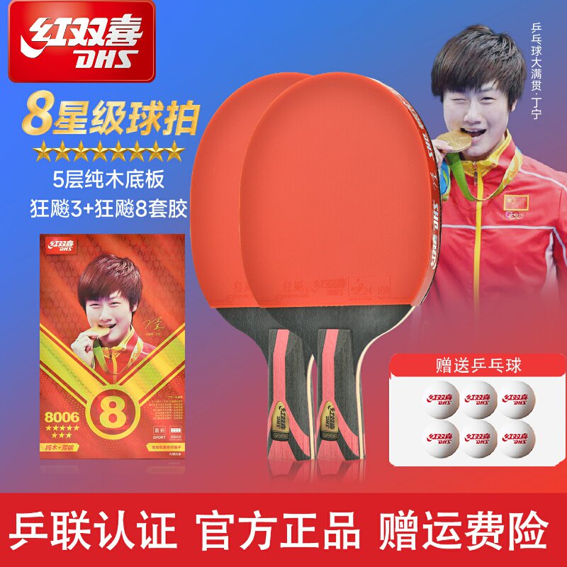 📚 红双喜乒乓球拍8星专业级天极蓝正品单拍狂飙九星八星7星兵乓球拍