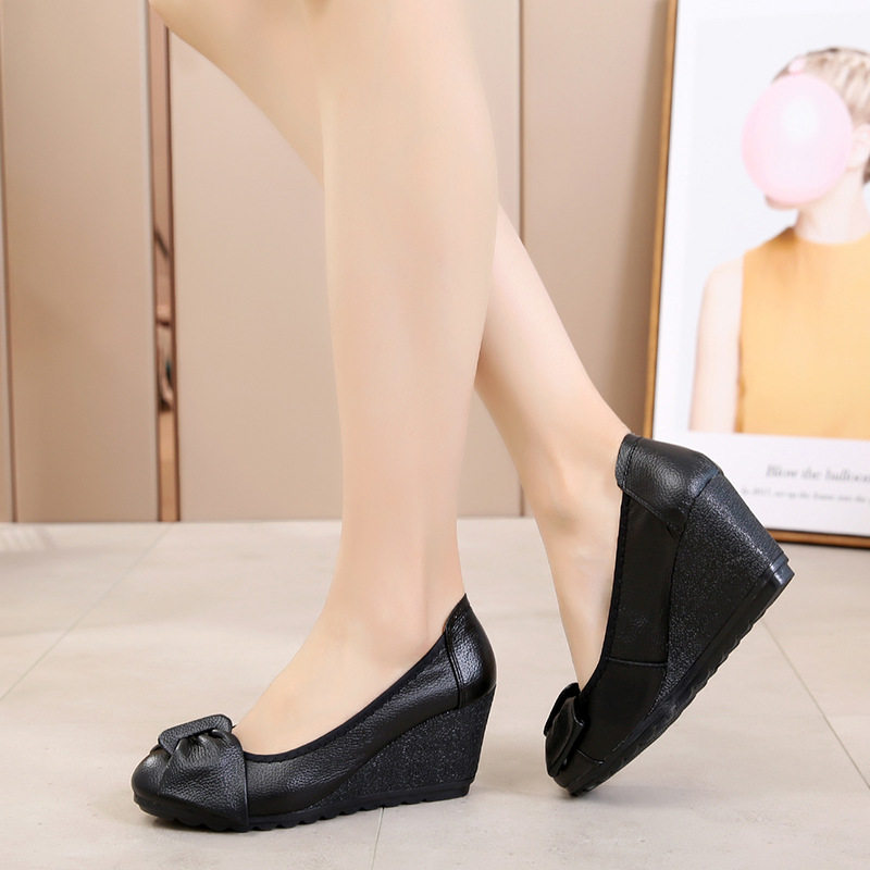 📚 高跟豆豆鞋女鞋2020春季新款真皮牛筋底单鞋坡跟软底上班工作鞋子