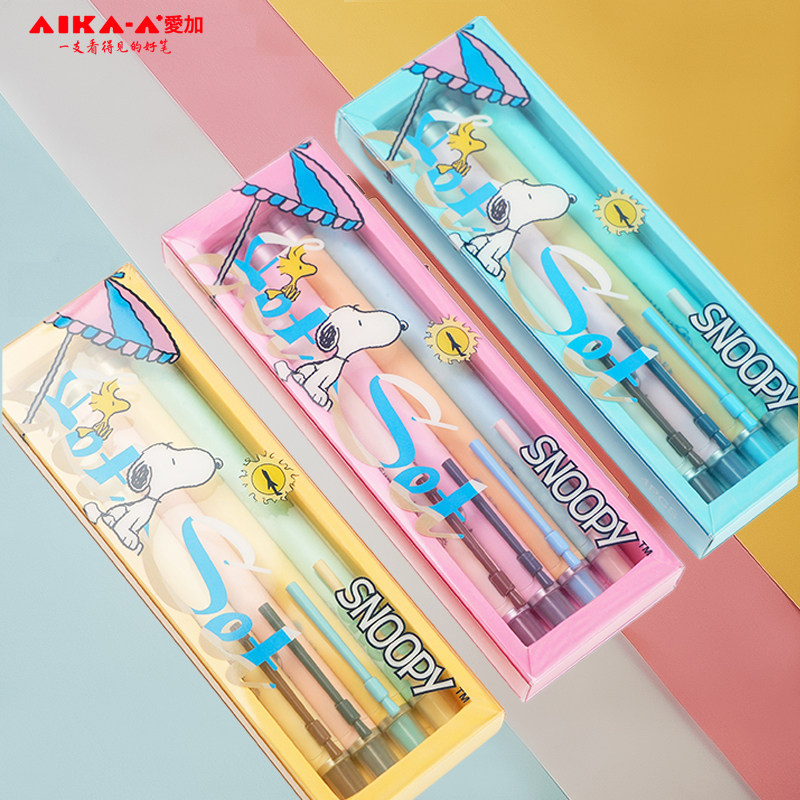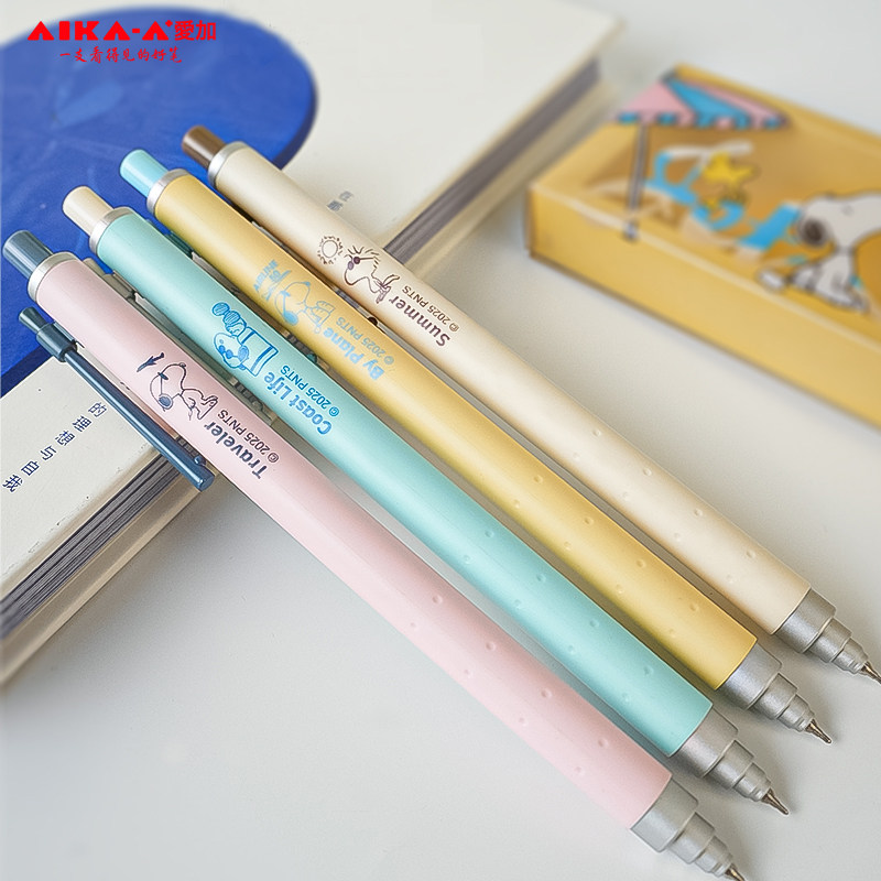 📚 【开学季】爱加史努比联名低重心中性笔高颜值可爱按动大容量AS笔尖0.5mm学生书写速干顺滑黑色签字笔AK4758