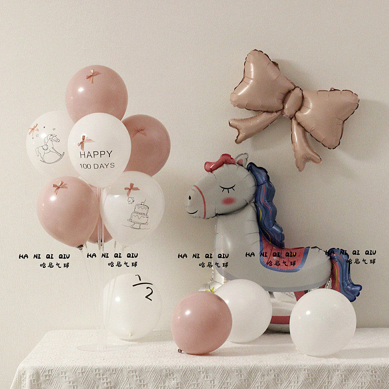 📚 ins暮光粉马宝宝100天满月桌摆气球装饰百天百日宴周岁生日布置