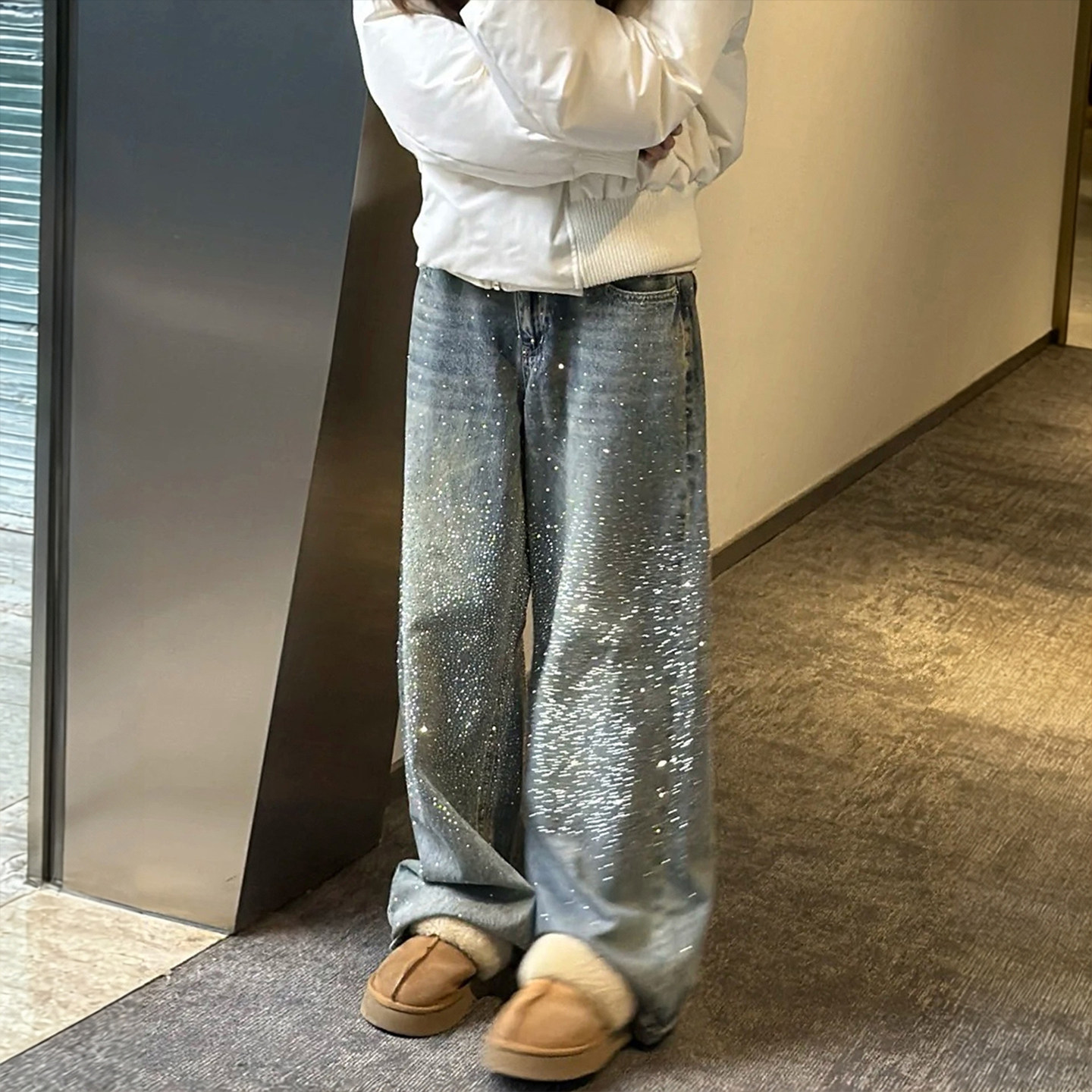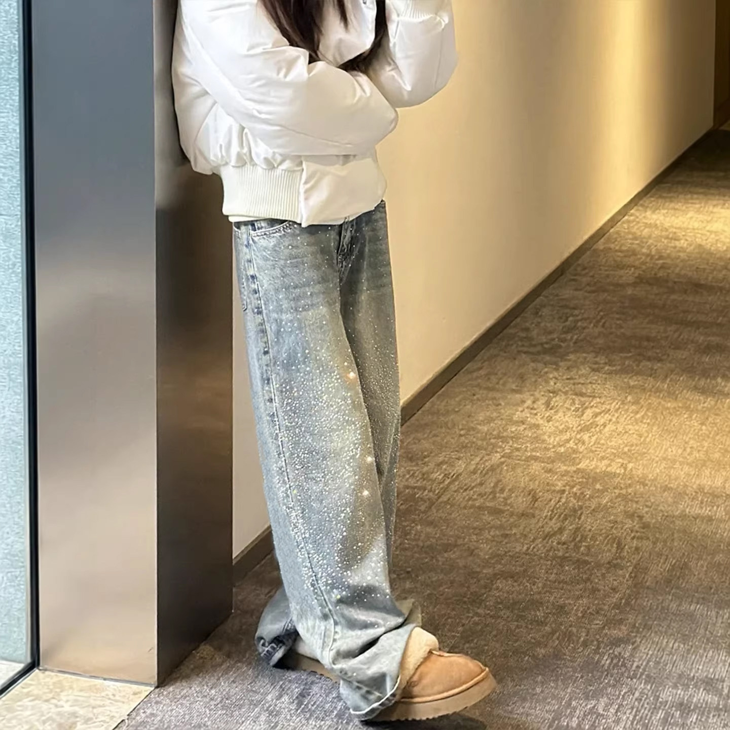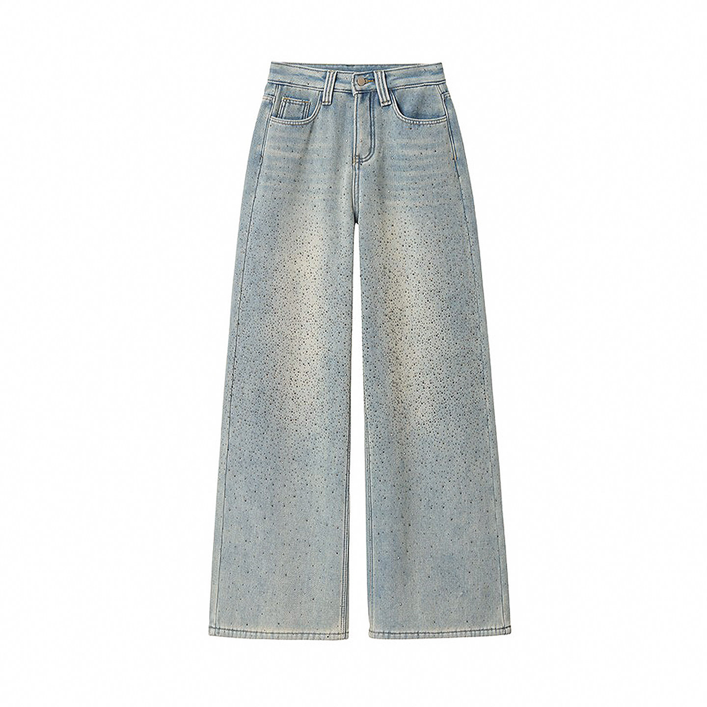 📚 特大码今年流行的爆款女装满天星烫钻牛仔裤女胖mm显瘦阔腿长裤子