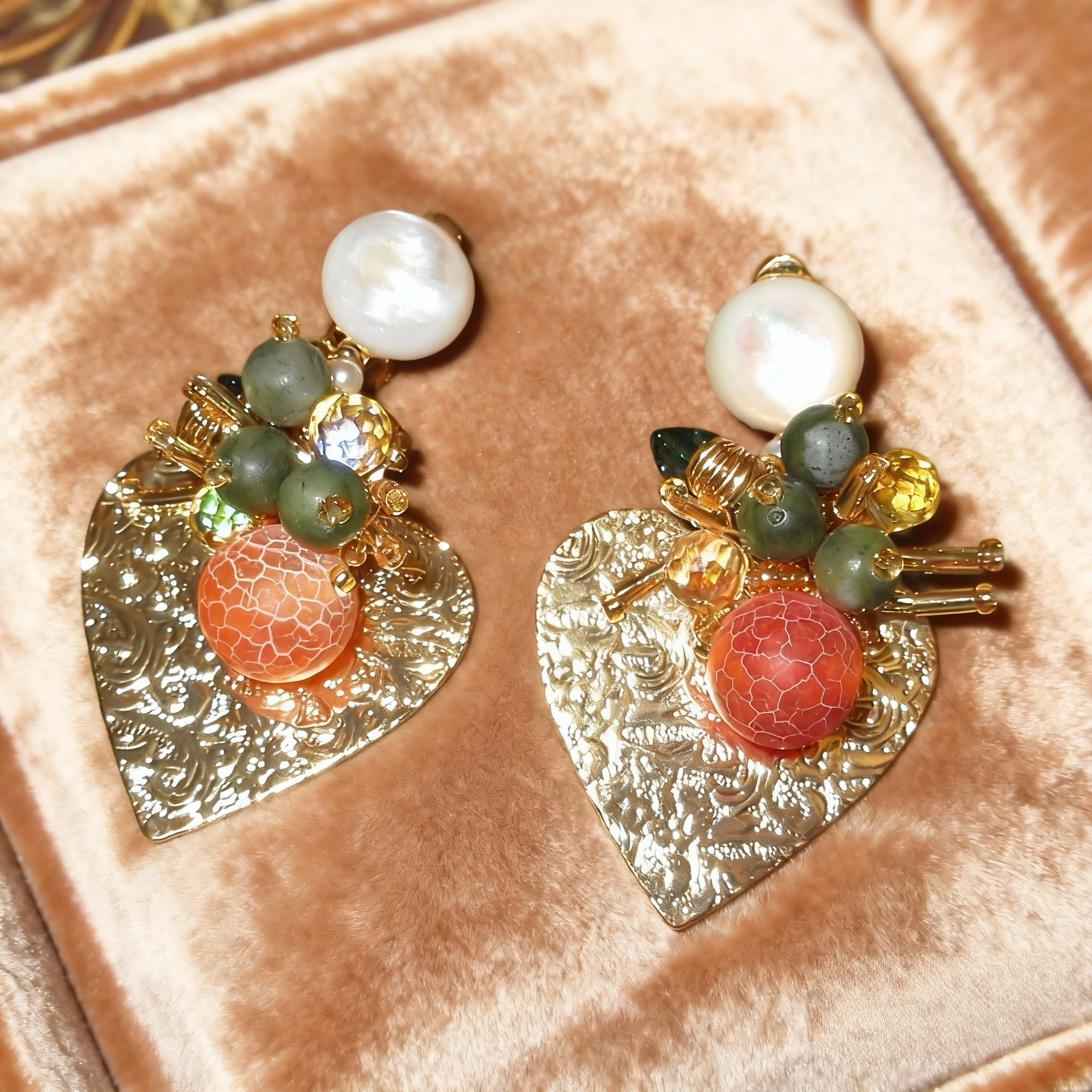 📚 大橘大利 黄打屁原创设计可爱节日金橘串珠贝母夸张925银耳钉耳夹