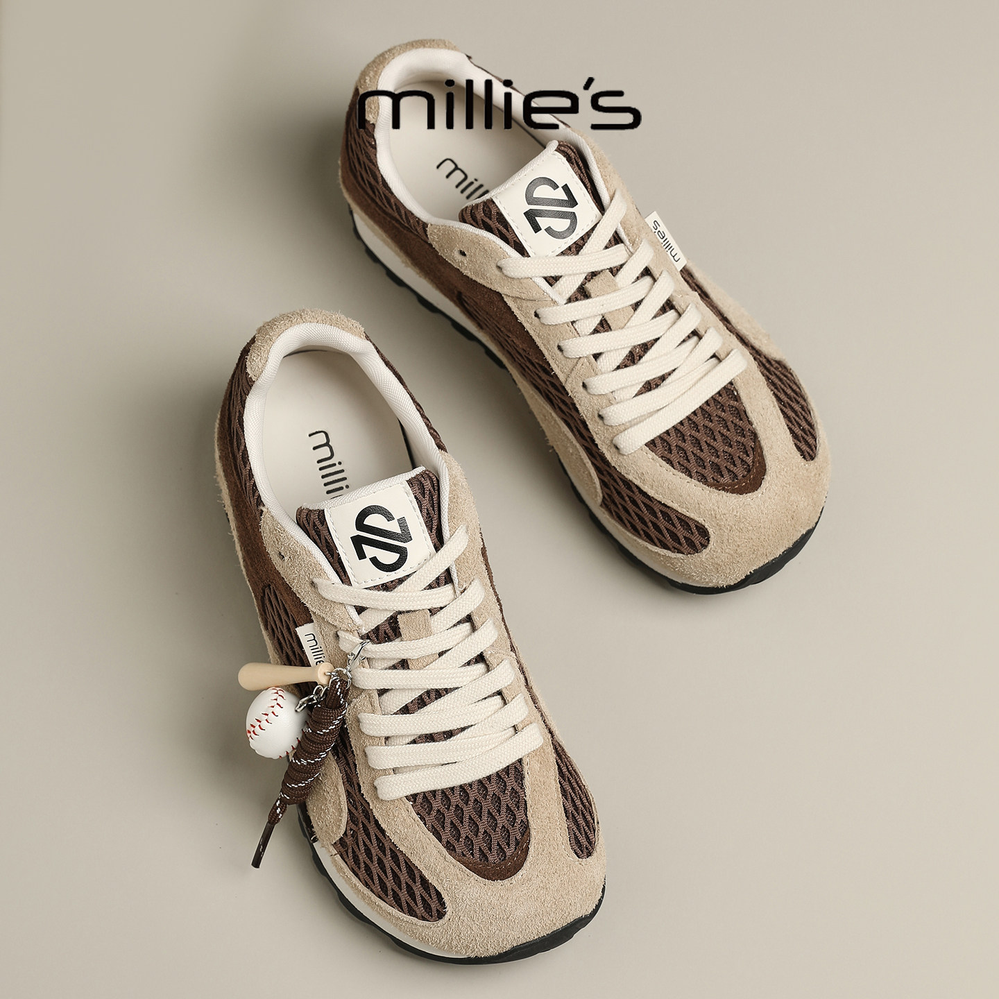 📚 MILLIE'S/妙丽2025新款复古网鞋舒服不累脚的厚底鞋休闲德训鞋