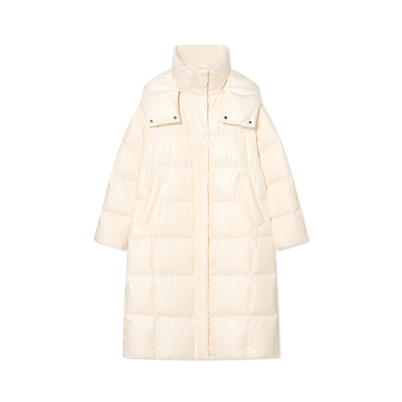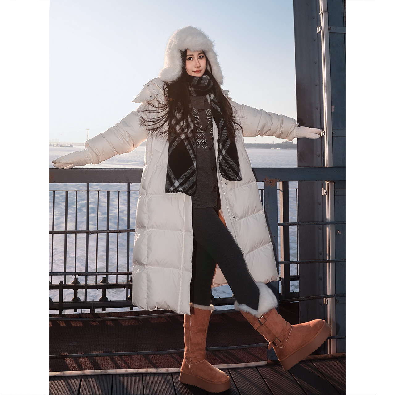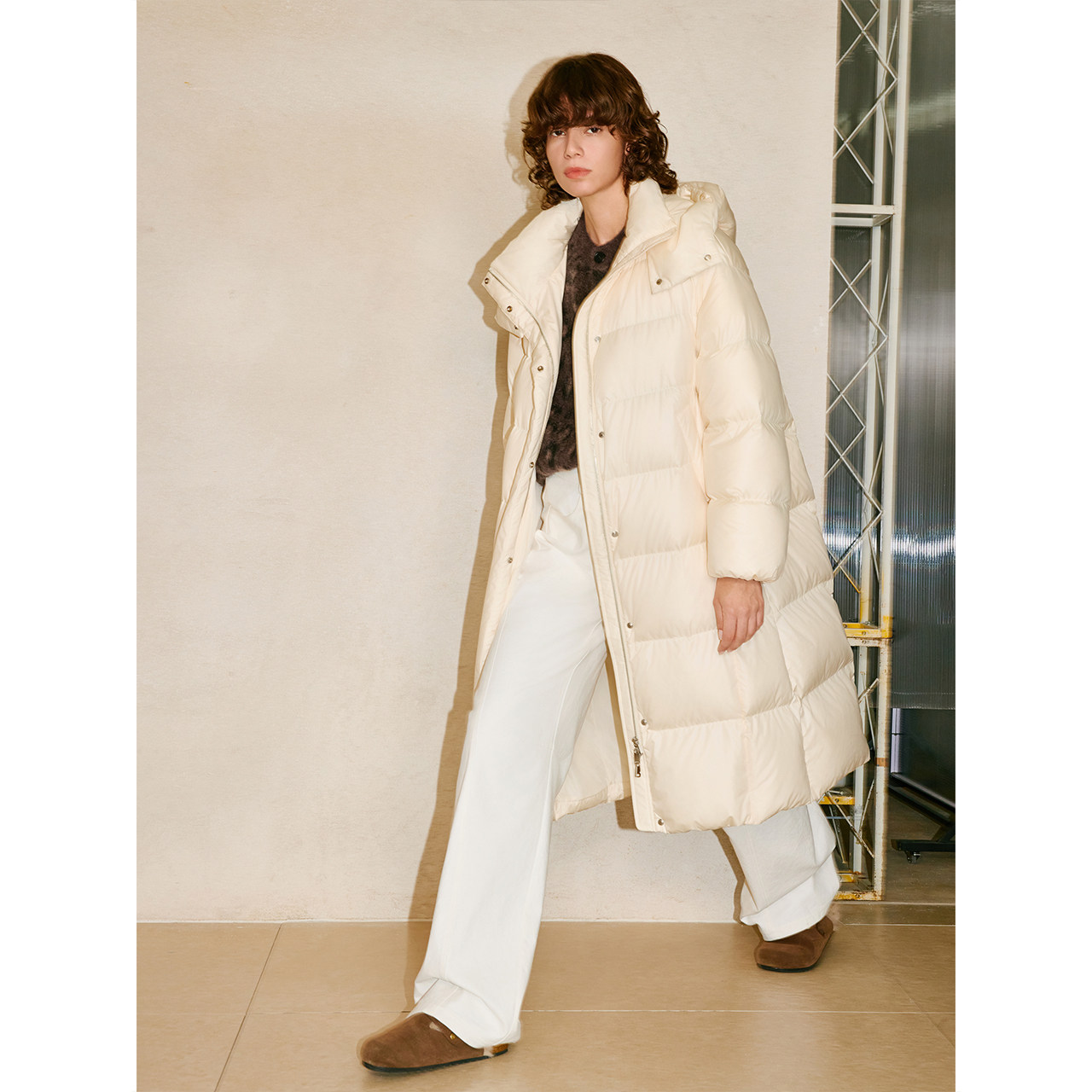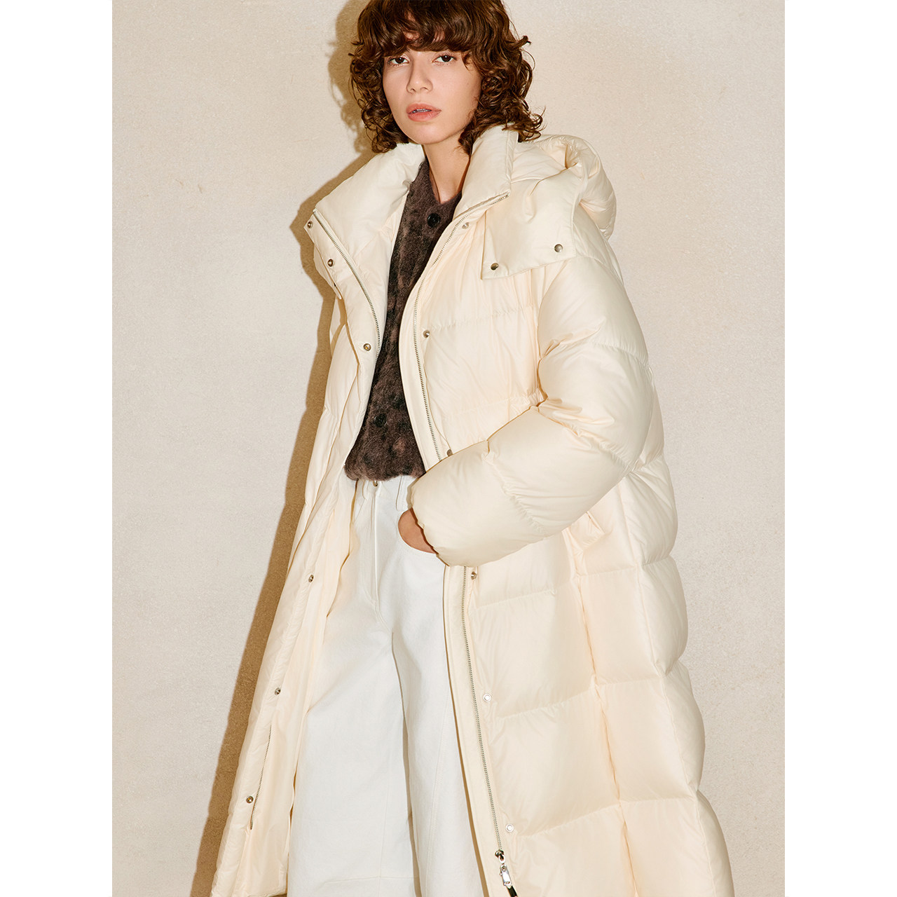 📚 COVERINS米白高克重白鹅绒羽绒服女长款可拆连帽立领2025冬季新款