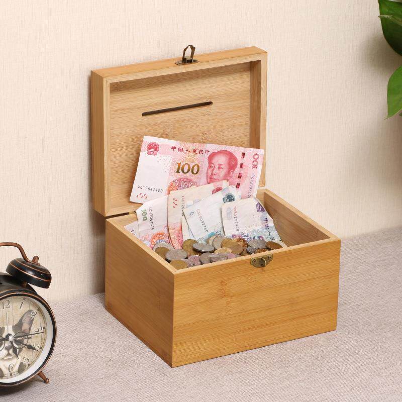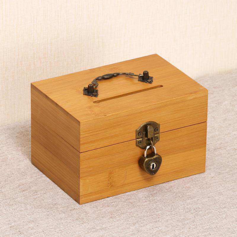 📚 木盒竹木存钱罐木质复古带锁儿童礼品储蓄罐家用木箱百宝箱收纳盒