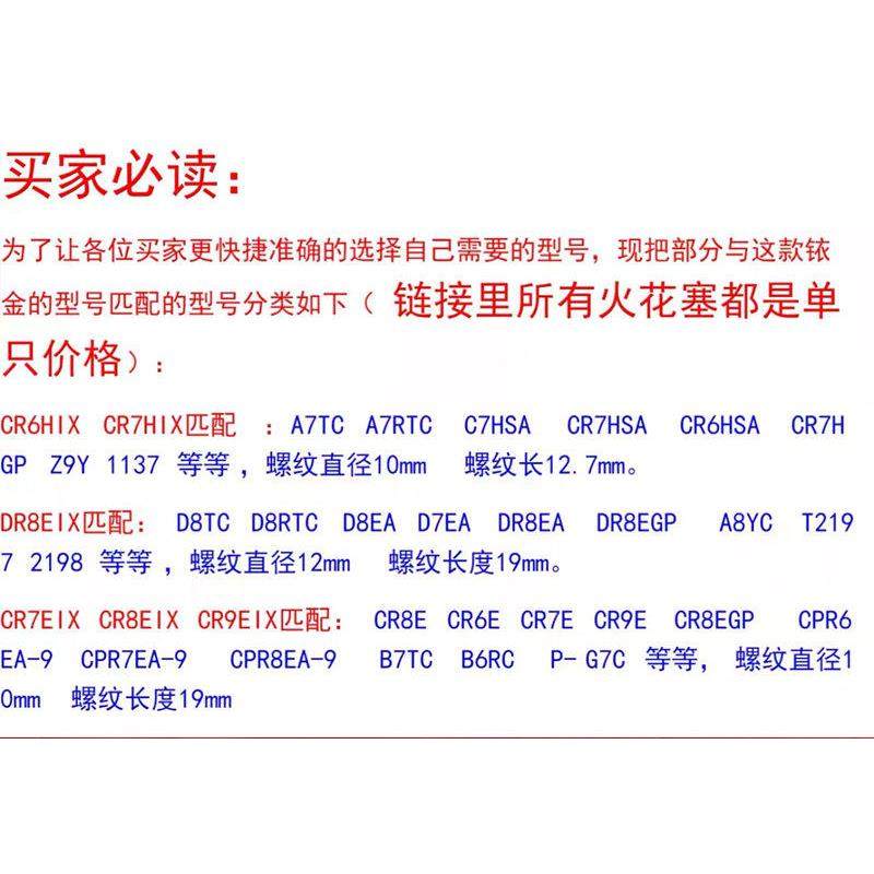 📚 NGK机车铱金火花塞 CR6/7HIX CR7/8/9EIX GW250 黄龙600 CB400