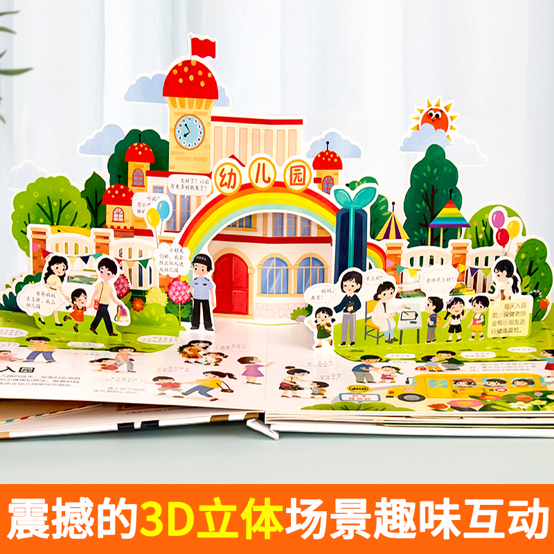 📚 抖音同款】我爱幼儿园养成好习惯儿童互动游戏3d立体书安全早知道幼儿入园准备小中大班故事2-3–6岁宝宝绘本早教启蒙机关翻翻书