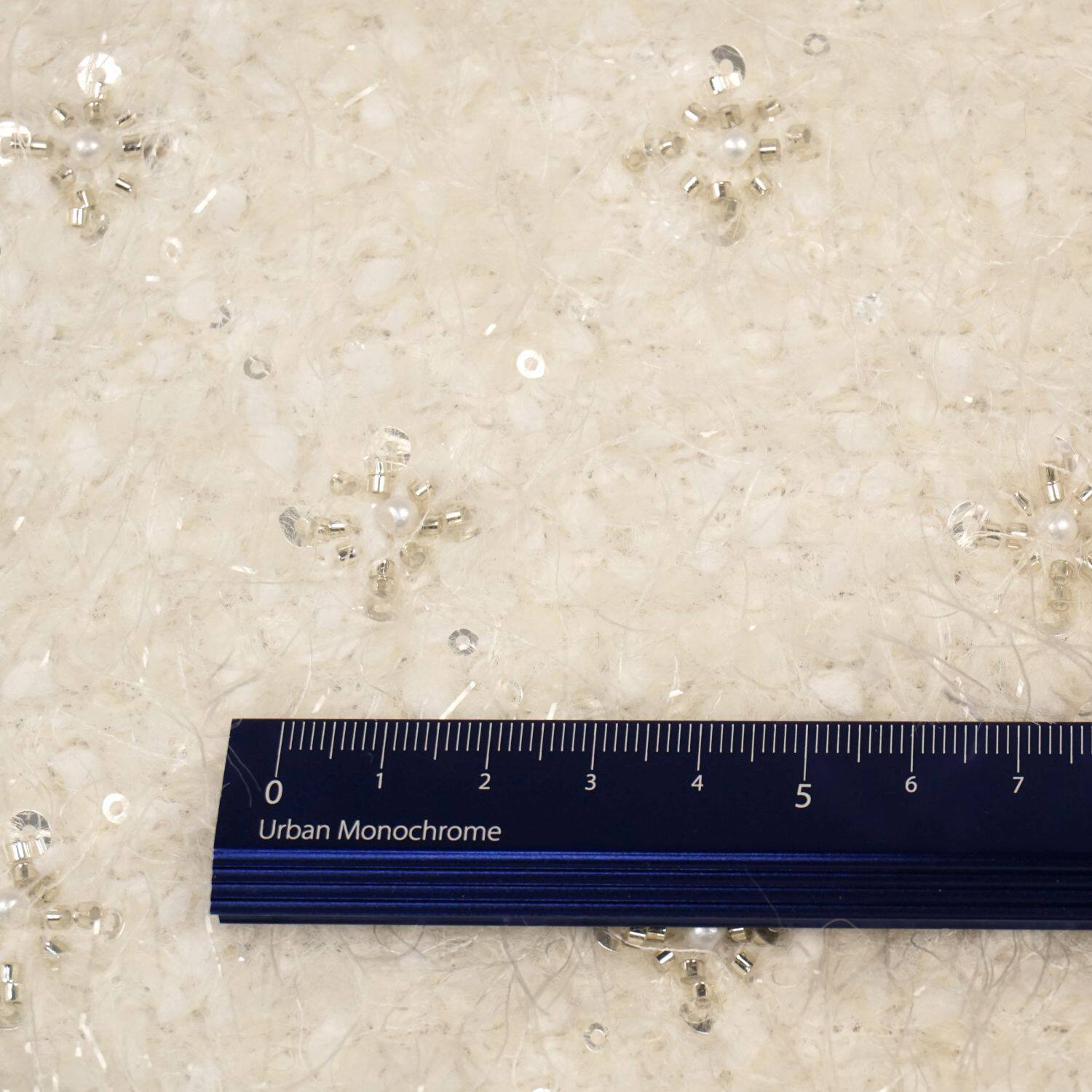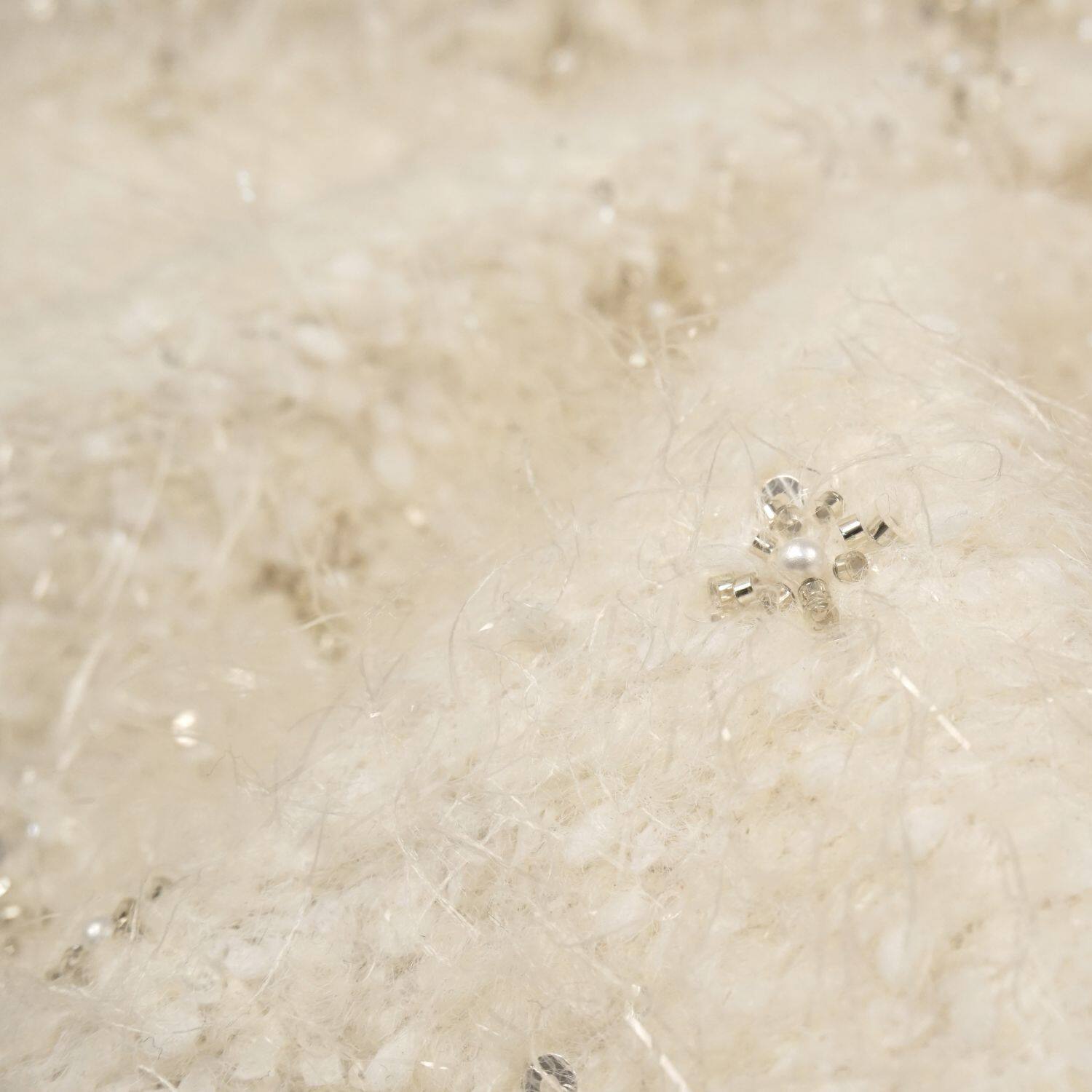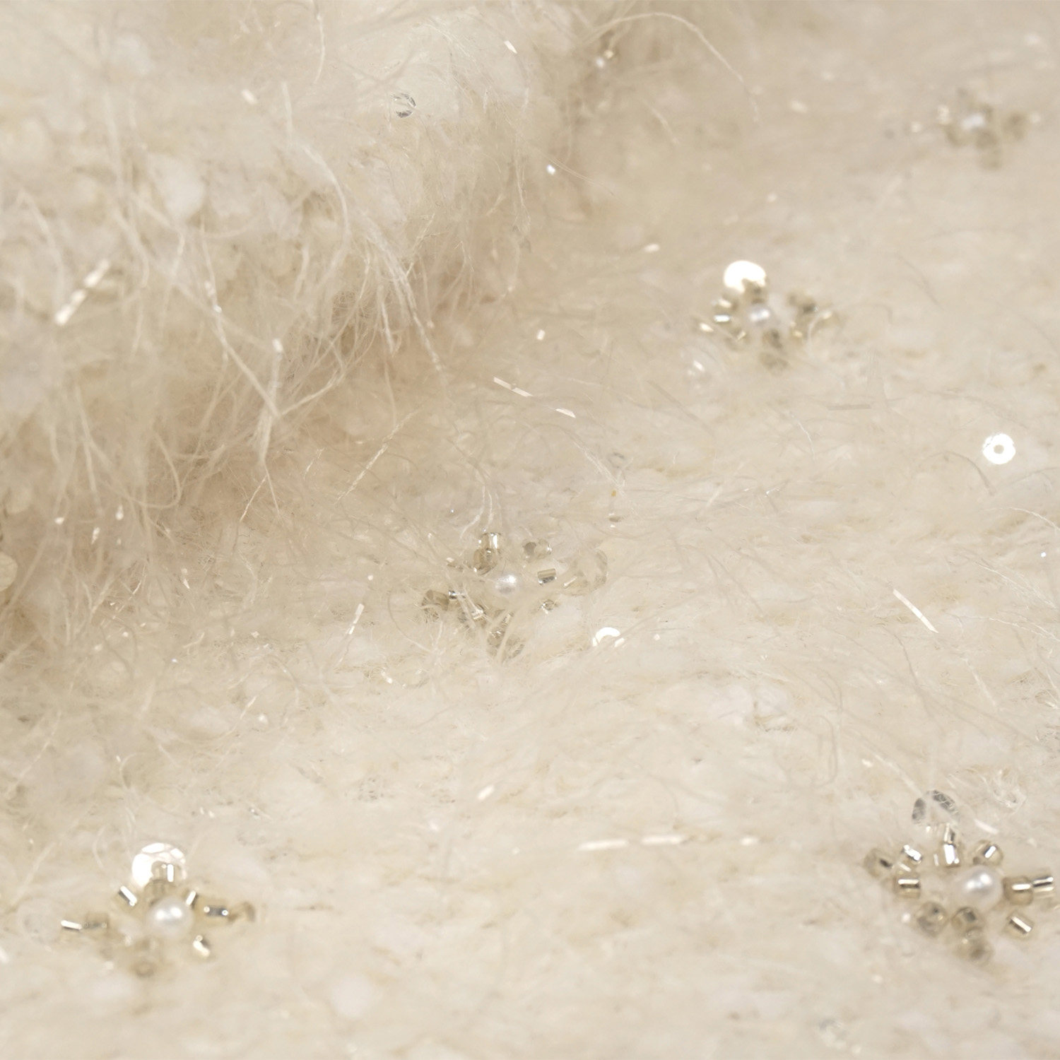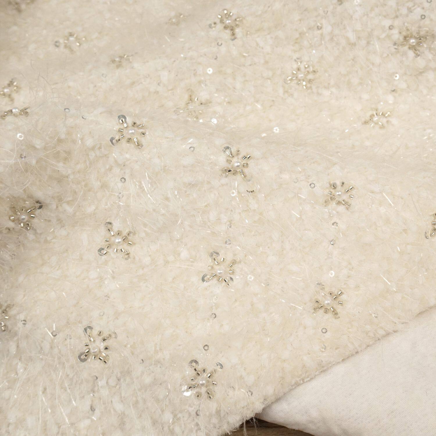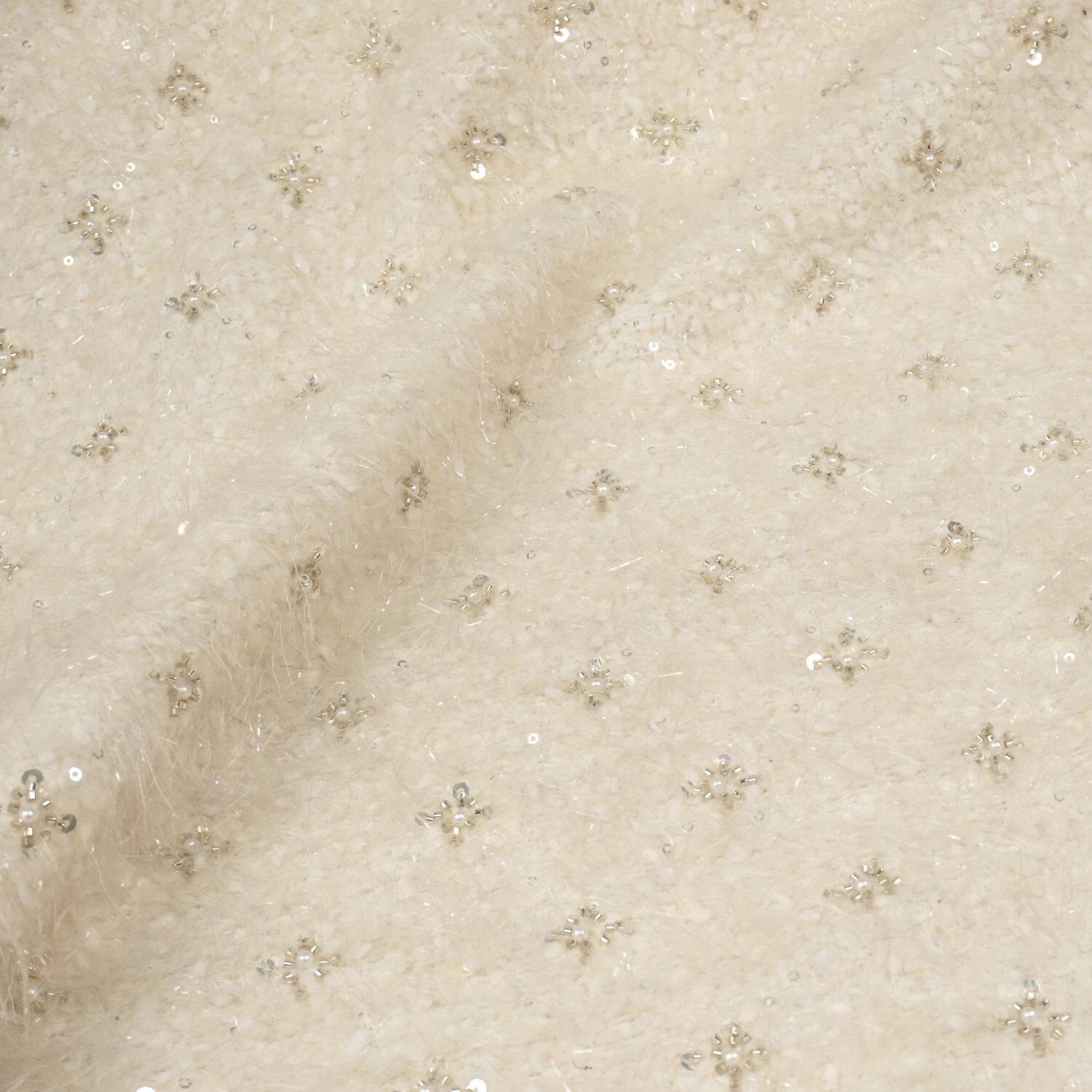 📚 高定流出米白色钉珠银色亮片长羽毛羊毛布料 礼服大衣裙子面料
