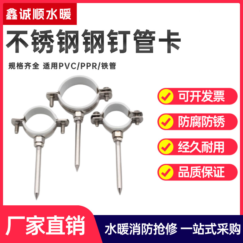 📚 钉卡不锈钢管卡304钢钉管夹75PPR吊卡110PVC排水管抱箍20管码墙卡