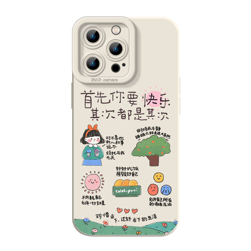 📚 首先你要快乐其次都是其次适用苹果15手机壳iphone13小米14华为pura70情侣mate60pro新款17女生16红米k80硅胶