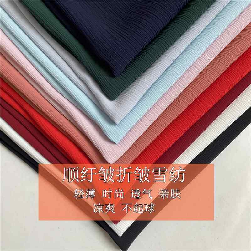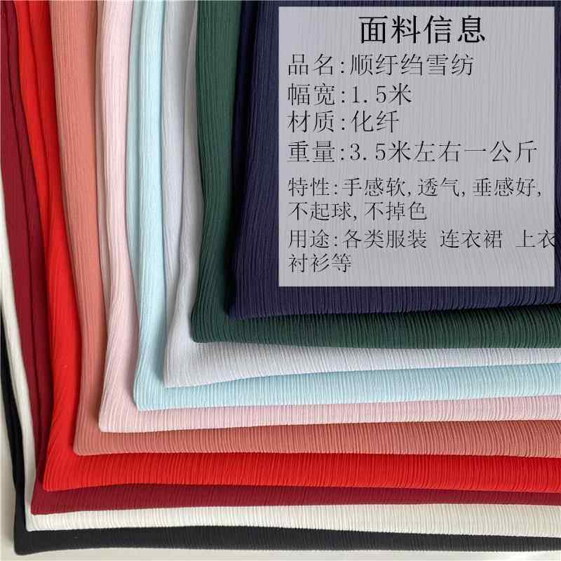 📚 夏季折皱雪纺布料凉爽时尚女装连衣裙衬衫吊裙顺纡皱纯色服装面料