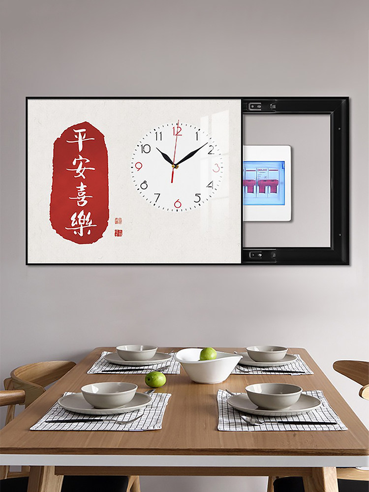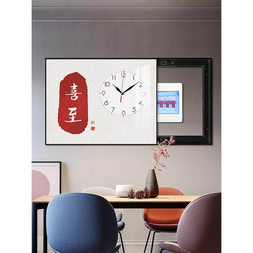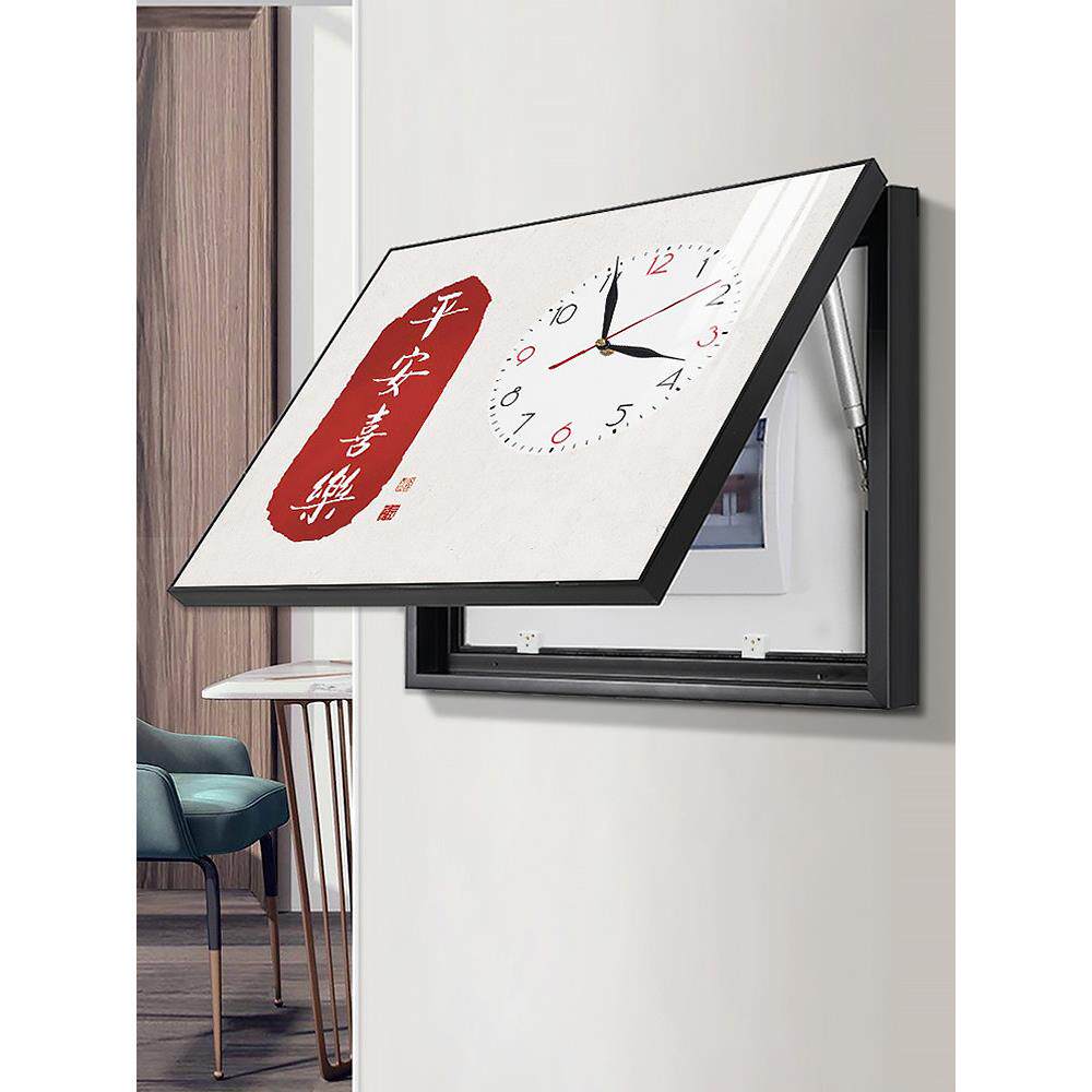 📚 电表箱装饰画带钟表新中式免打孔遮挡空开箱配电箱电源电闸盒挂画