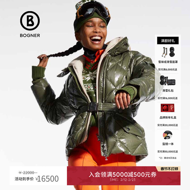 📚 BOGNER博格纳 经典冬季女士漆面收腰连帽短款羽绒滑雪服31747485