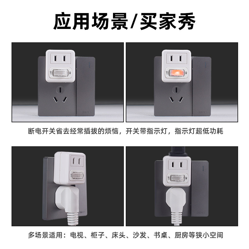 📚 带开关插头二眼转接头一键断电控制无线扩展插座家用电源转换器