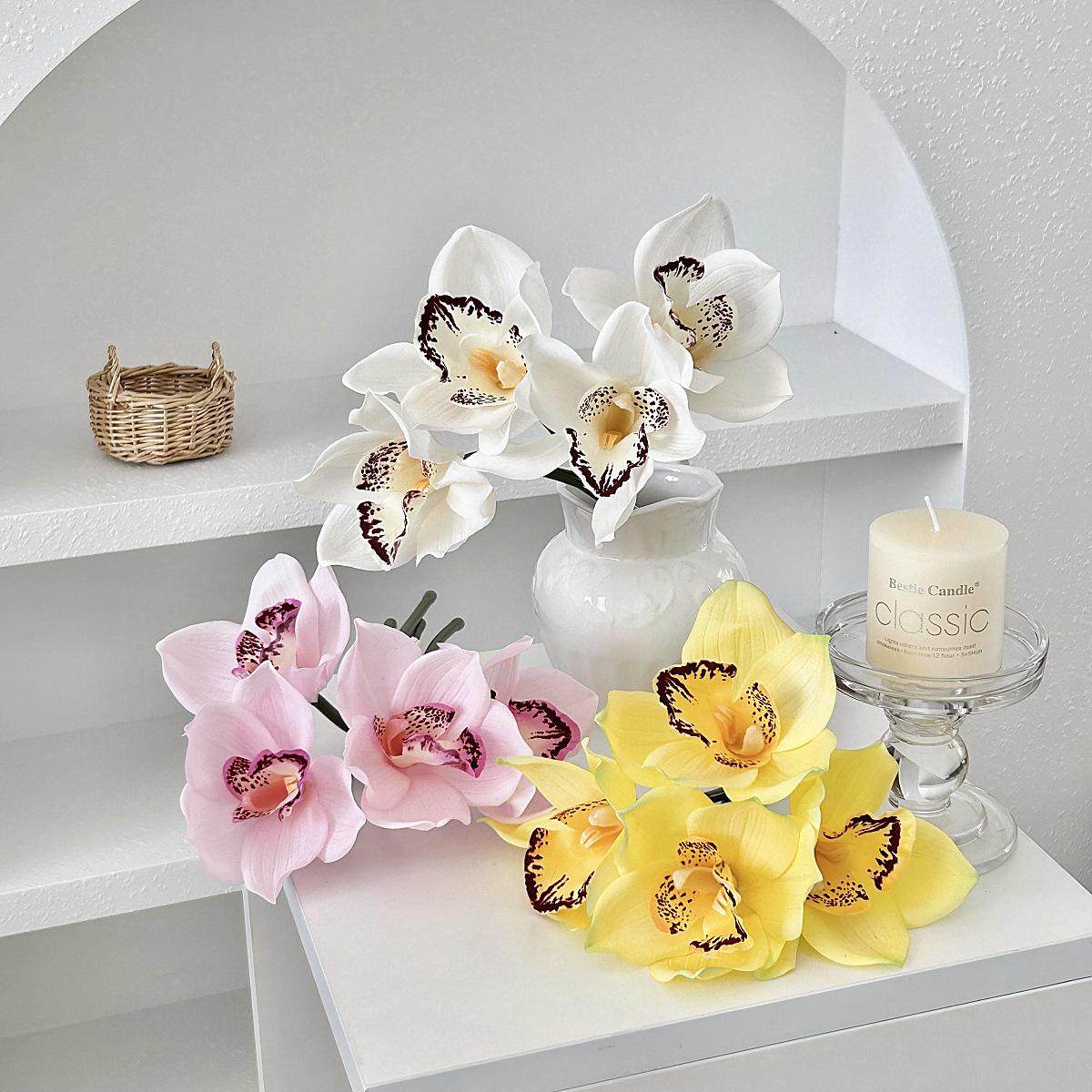 📚 栀美家蕙兰仿真花摆件兰花假花花束客厅边几装饰花餐桌花摆花