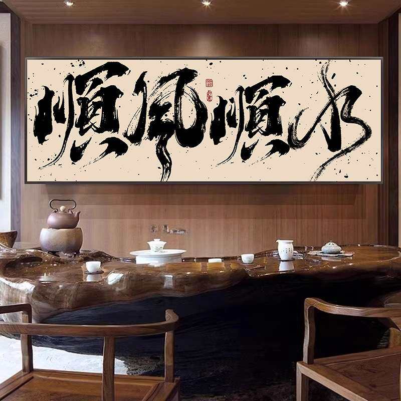 📚 办公室风生水起国潮风书法挂画书房茶室禅意壁画事在人为装饰字画