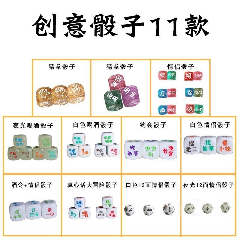 📚 D酒吧夜场创意金葱雕刻情趣骰子娱乐KTV酒令色子聚会游戏彩色筛子