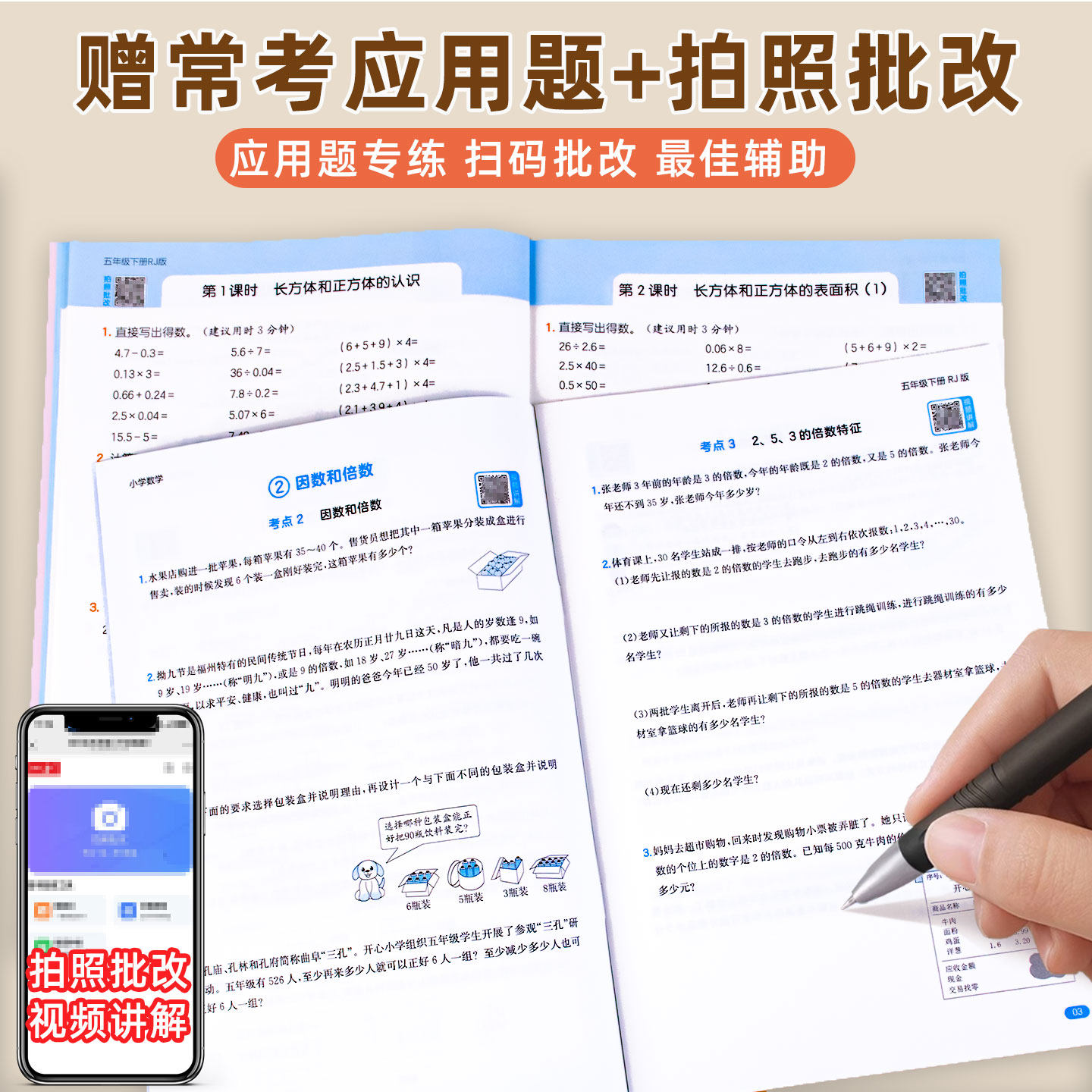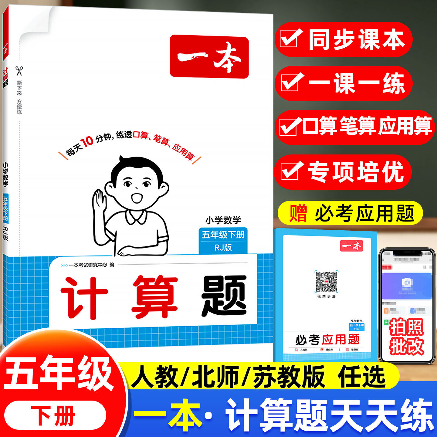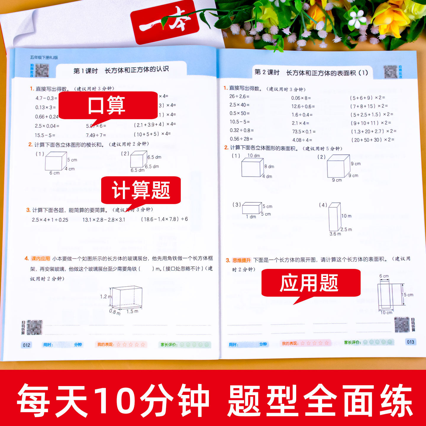 📚 一本小学数学计算题五年级上册下册口算天天练人教版北师版苏教版口算笔算应用题专项训练每日一练培优数学同步练习册强化训练书