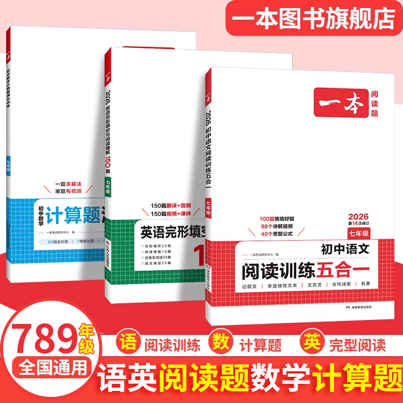 📚 一本官方旗舰店正品数学计算题压轴题语文阅读理解英语完形填空与阅读理解七年级上下册通用八九年级初一二初中必刷题专项训练