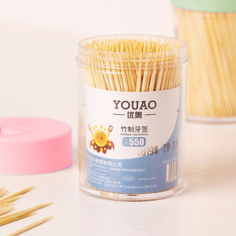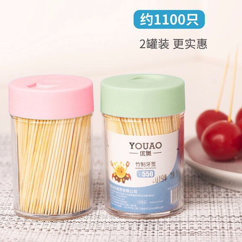 📚 优奥一次性双头竹牙签水果签小吃签罐装剔牙签竹签550支*2桶